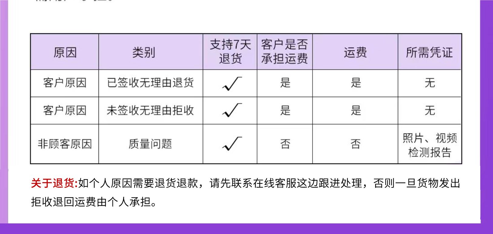 支持7天无理由退货