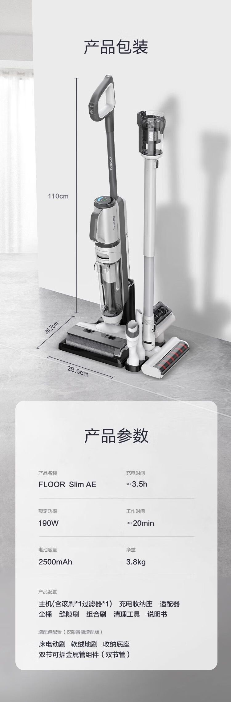 商品名称:添可无线洗地机IFloor Slim AE 家用拖地机扫地吸尘器 充电式洗拖一体机自动清洗