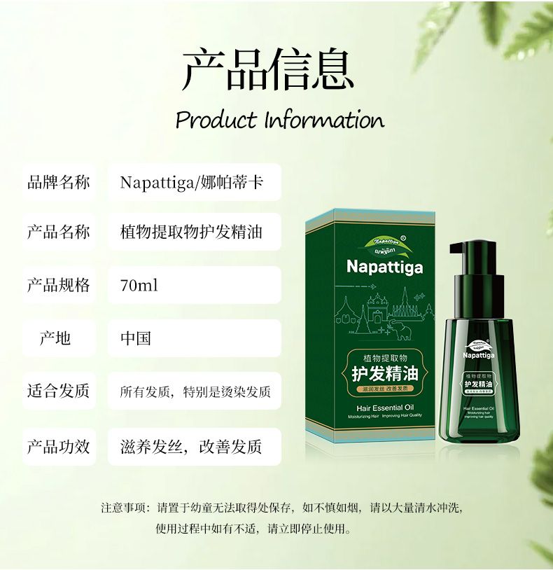 商品名称:napattiga/娜帕蒂卡 植物提取物护发精油 70ml