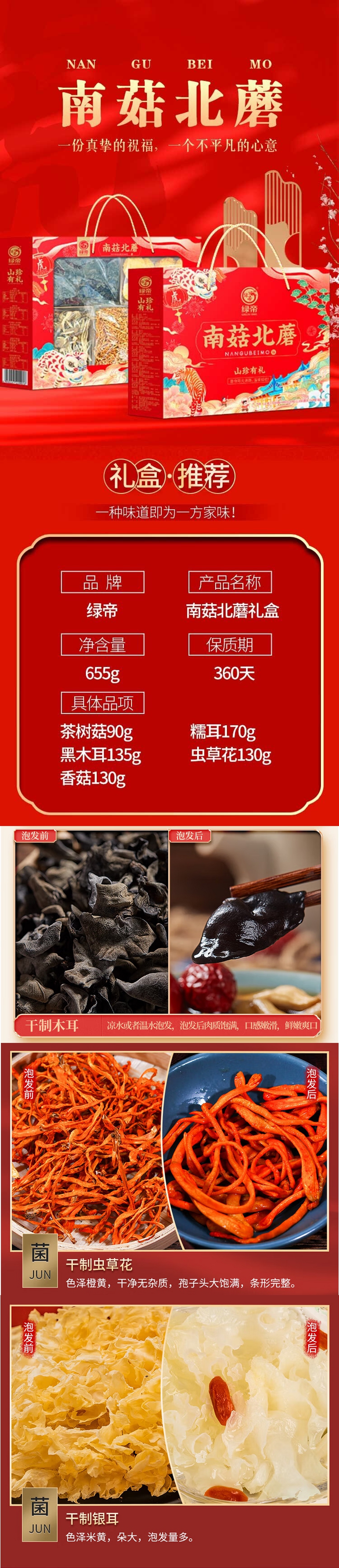 商品名称:绿帝 南菇北蘑菌菇礼盒655g