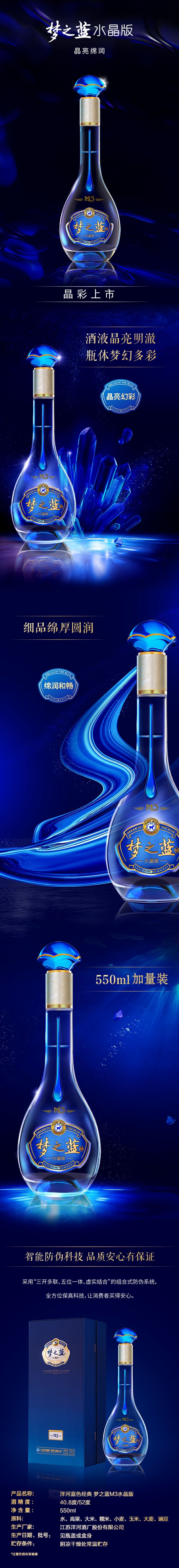 商品名称:洋河 蓝色经典 梦之蓝M3水晶版白酒 52度 550ml