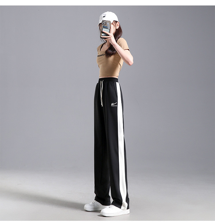 商品名称:显瘦直筒休闲裤女春秋款坠感长裤条纹个性百搭阔腿裤 976659