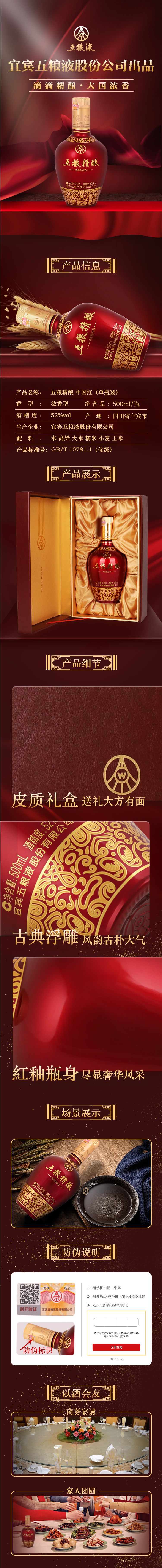 商品名称:五粮液 五粮精酿臻选52°浓香型白酒500ml*6瓶
