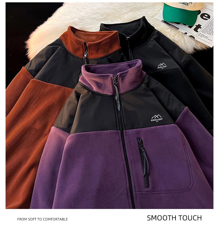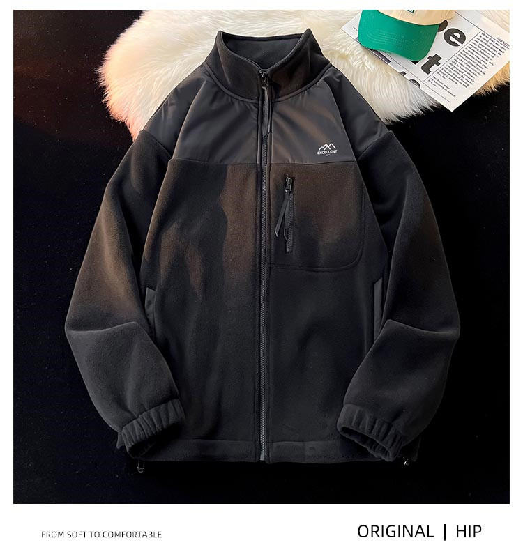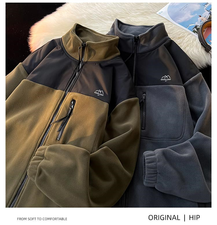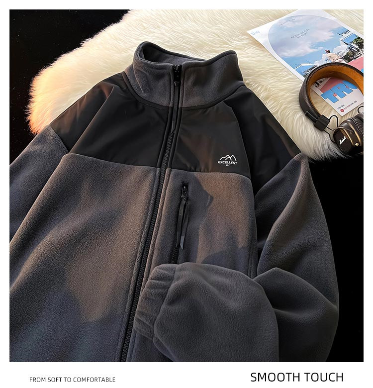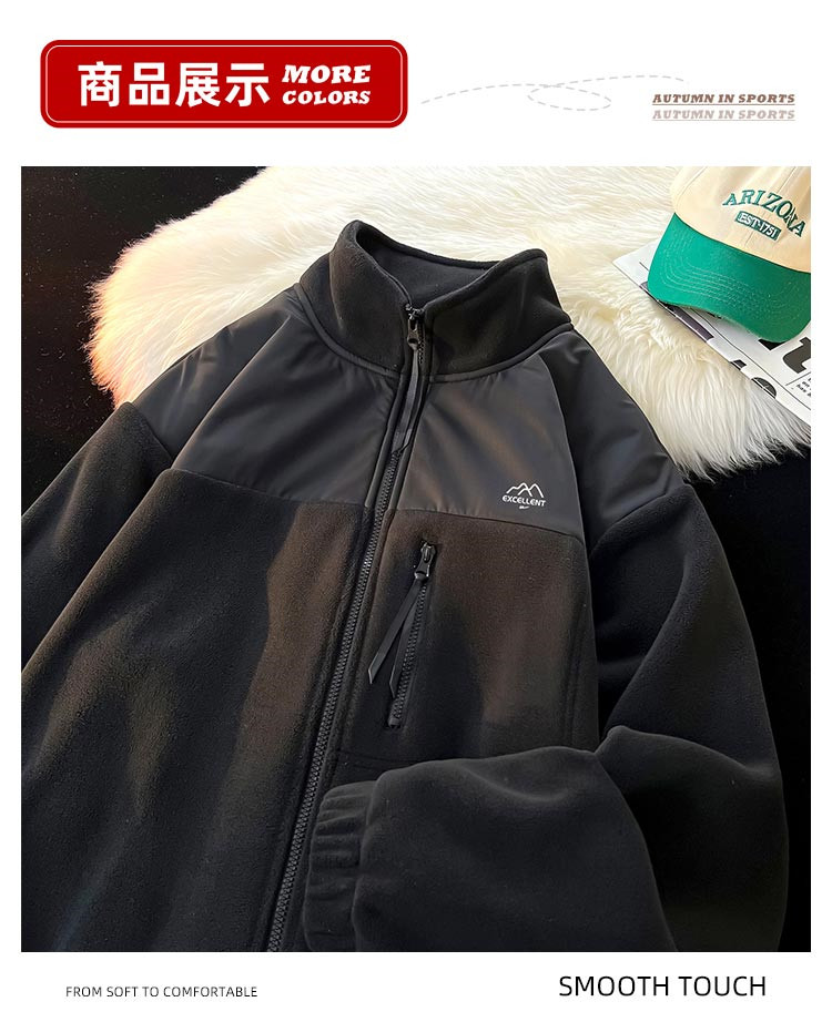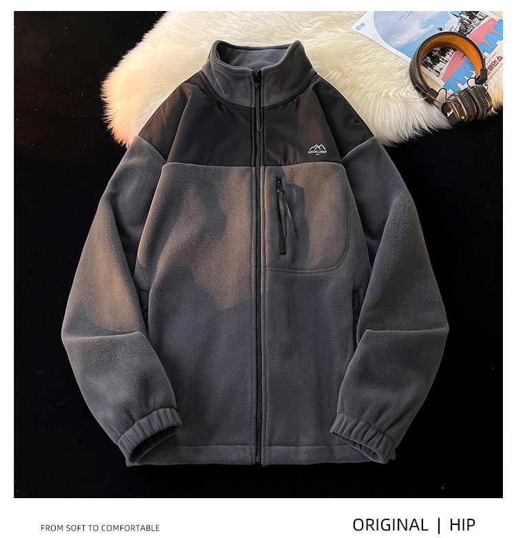 商品名称:【保暖摇粒绒】抓绒外套男加绒加厚夹克男女立领拉链开衫 670483
