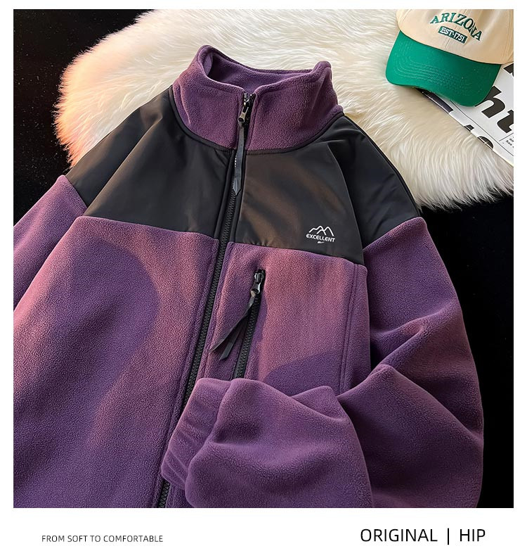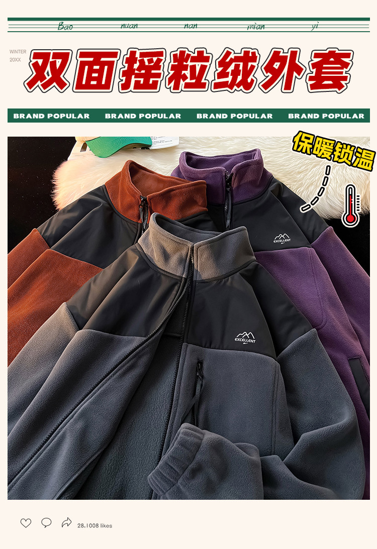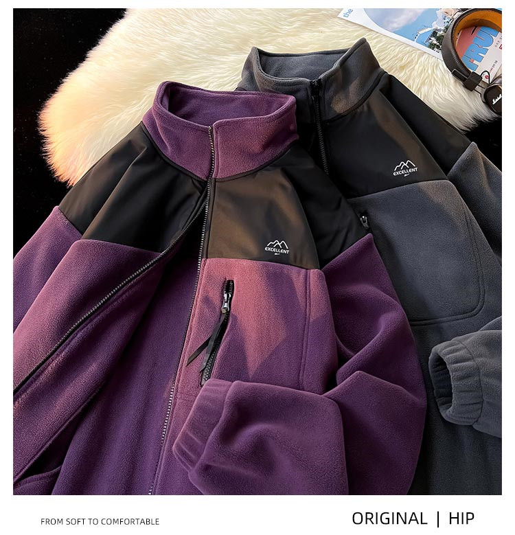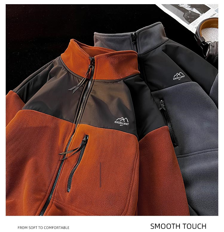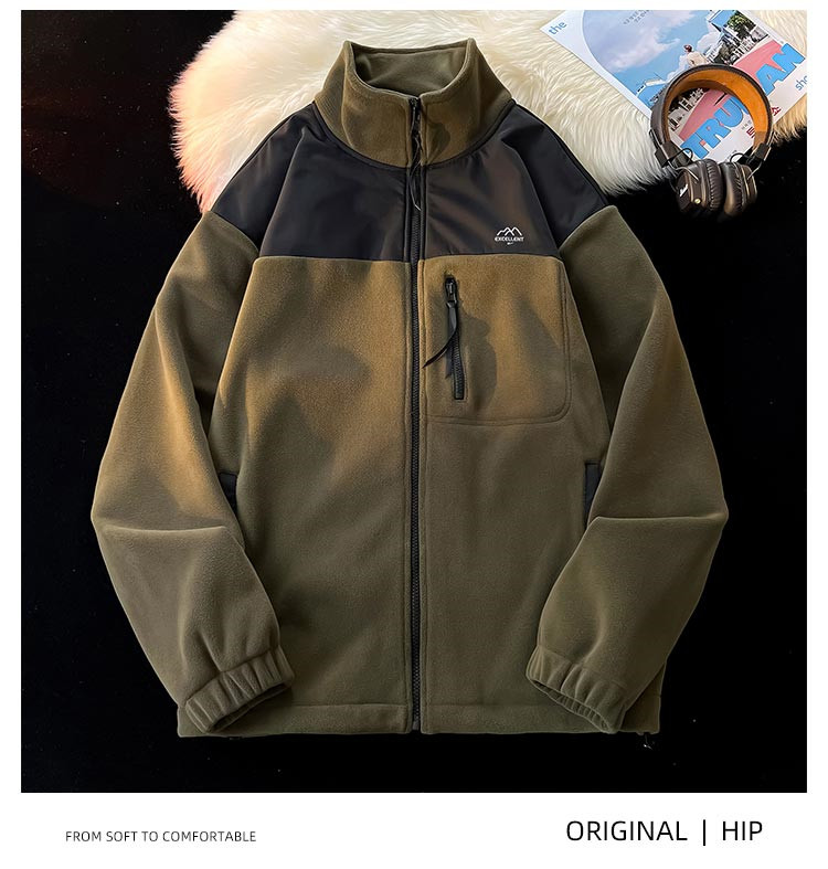 商品名称:【保暖摇粒绒】抓绒外套男加绒加厚夹克男女立领拉链开衫 670483