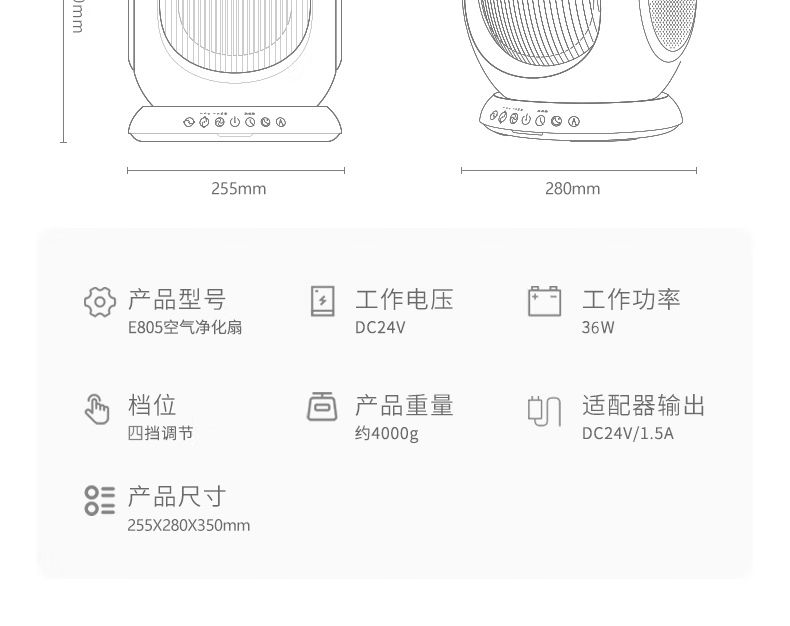 商品名称:爱登 净化循环扇(净化版)E805H白金色