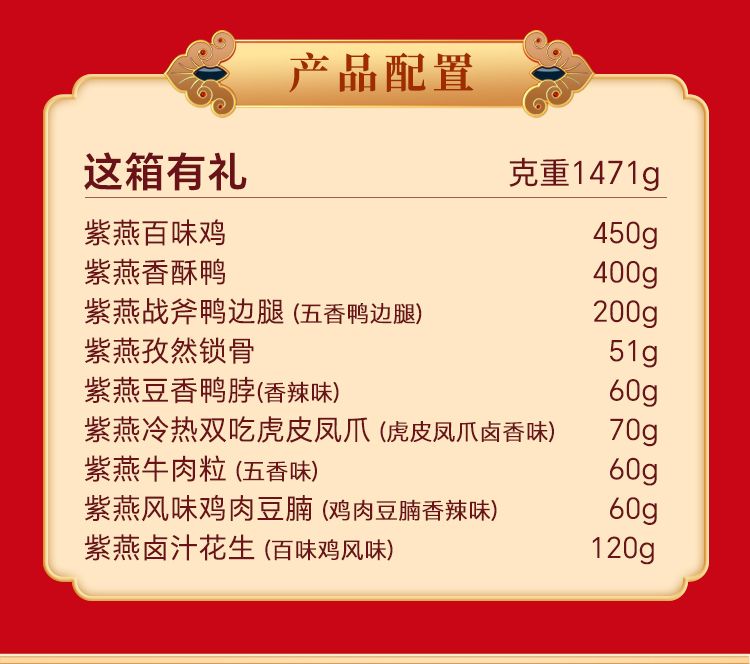 商品名称:紫燕百味鸡 紫燕这箱有礼礼盒1471gX1盒