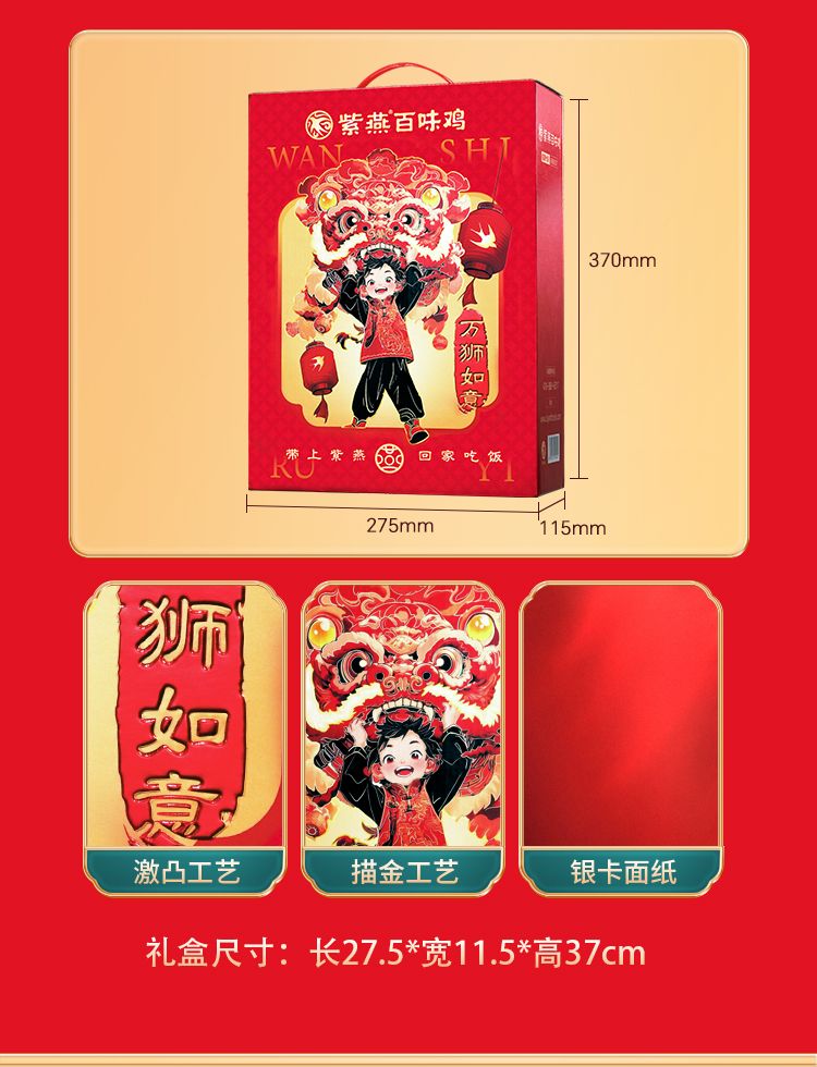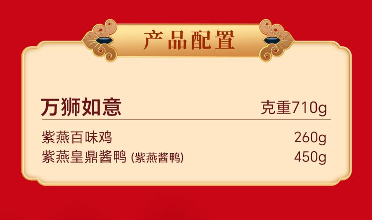 商品名称:紫燕百味鸡 紫燕万狮如意礼盒710gX1盒