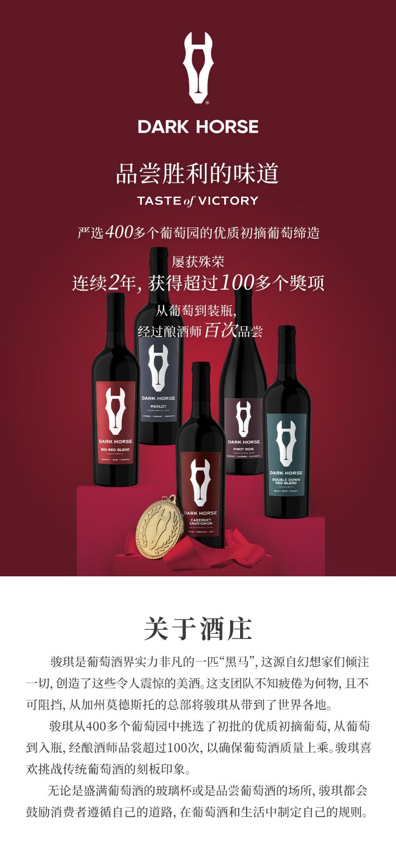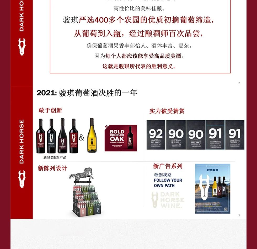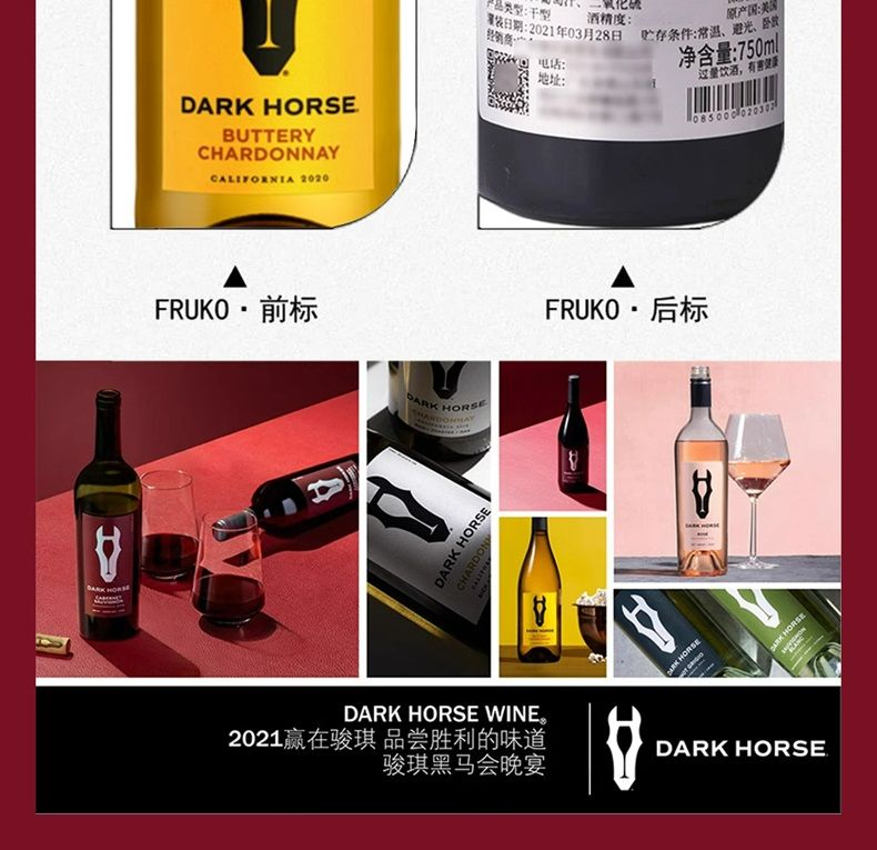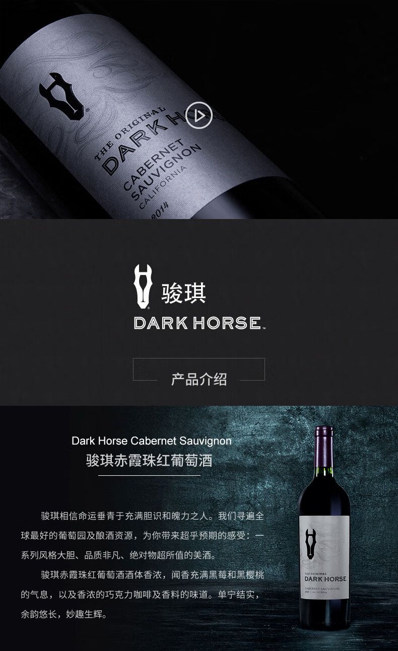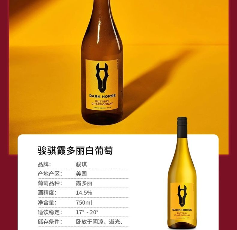 商品名称:骏琪(DARK HORSE)混酿红葡萄酒 叠荡 霞多丽白葡萄酒 嘉露酒庄 美国加州原瓶原装进口