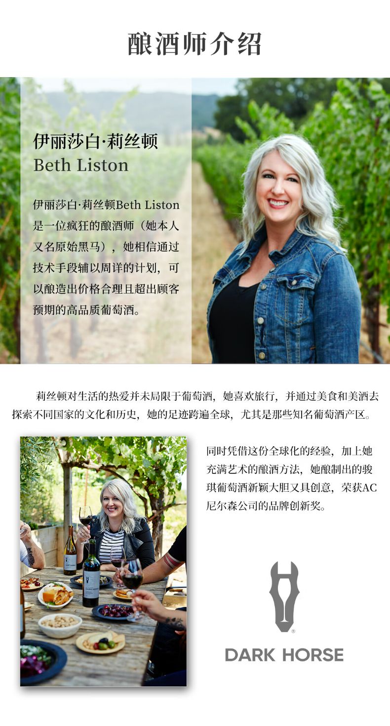 骏琪(DARK HORSE)混酿红葡萄酒 叠荡 霞多丽白葡萄酒 嘉露酒庄 美国加州原瓶原装进口