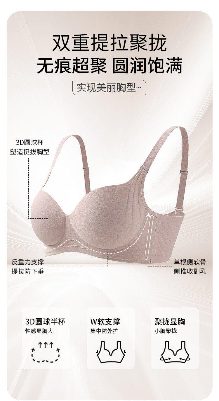 商品名称:【承托超聚拢】小胸显大圆圆杯内衣女无痕软支撑无钢圈调整文胸夏 185419