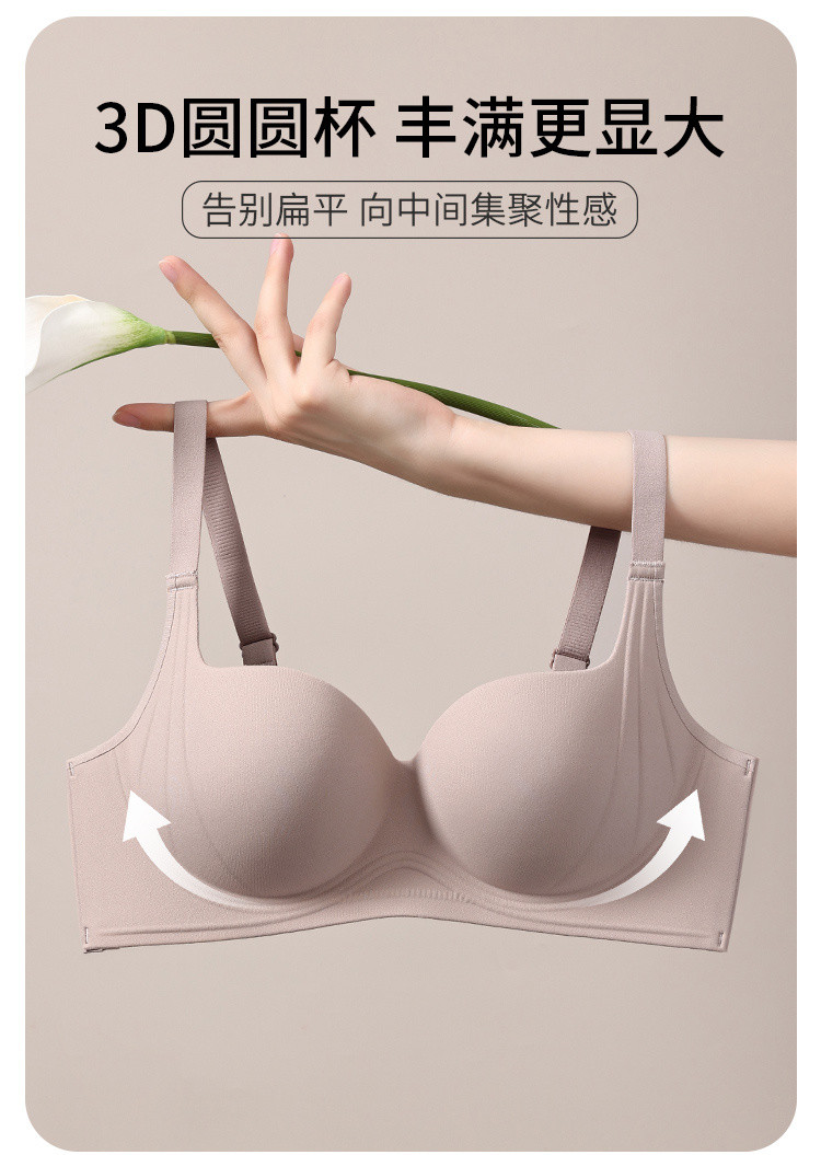 【承托超聚拢】小胸显大圆圆杯内衣女无痕软支撑无钢圈调整文胸夏 185419