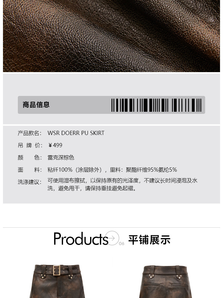 商品名称:【潮流简约】夏季做旧水洗短裙PU半身裙女 235482