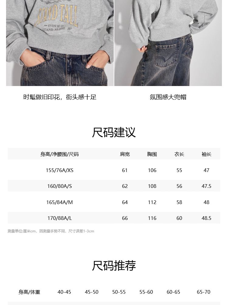 商品名称:【宽松印花纯棉】2025春季个性街头风连帽卫衣女 698906