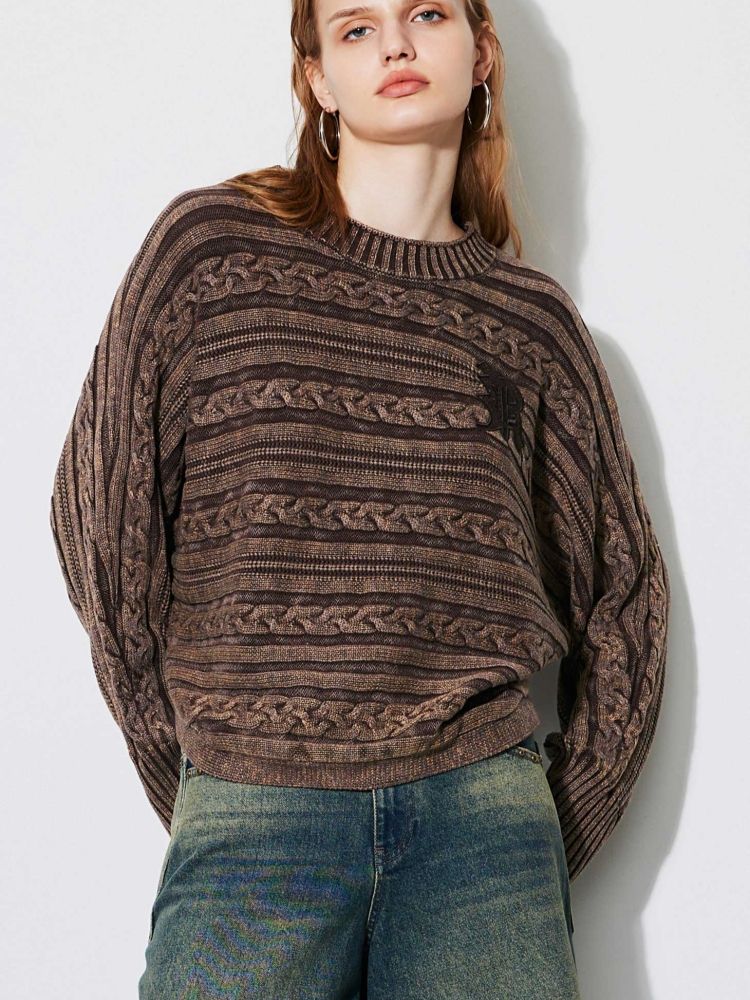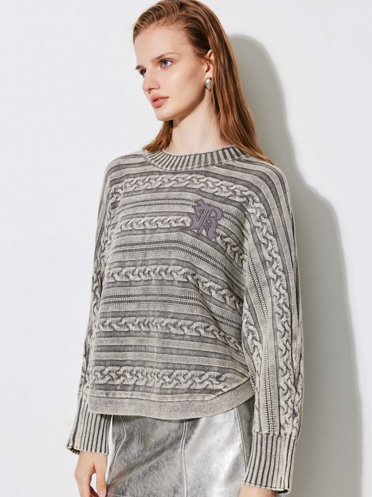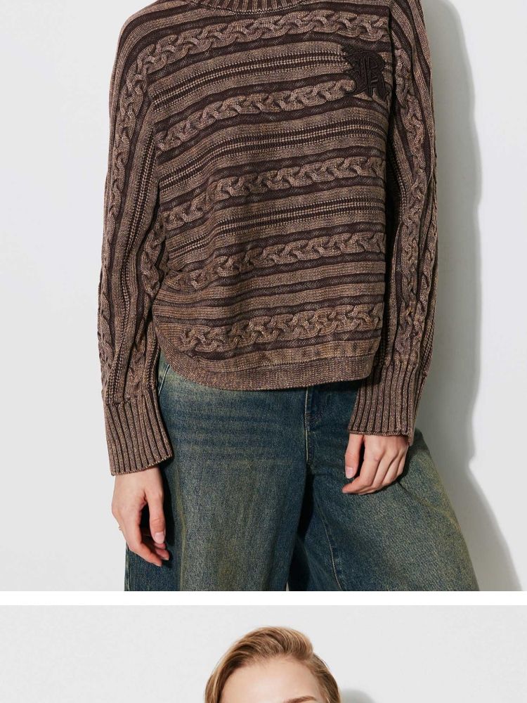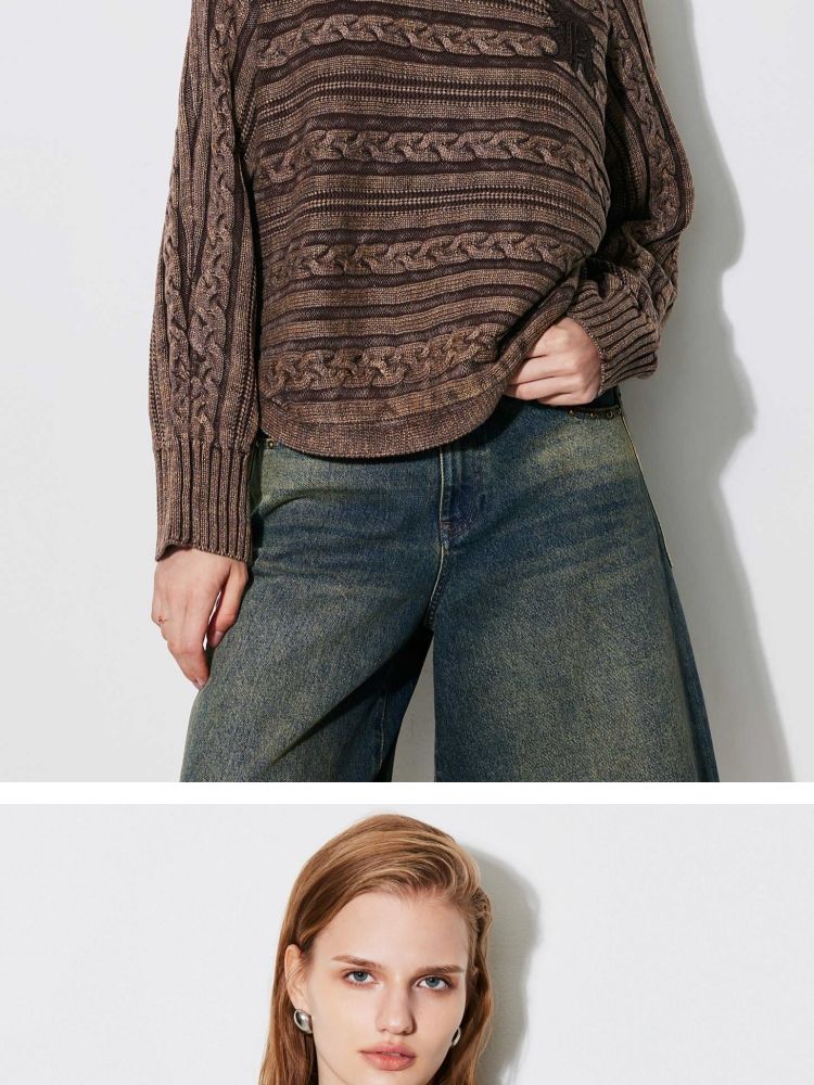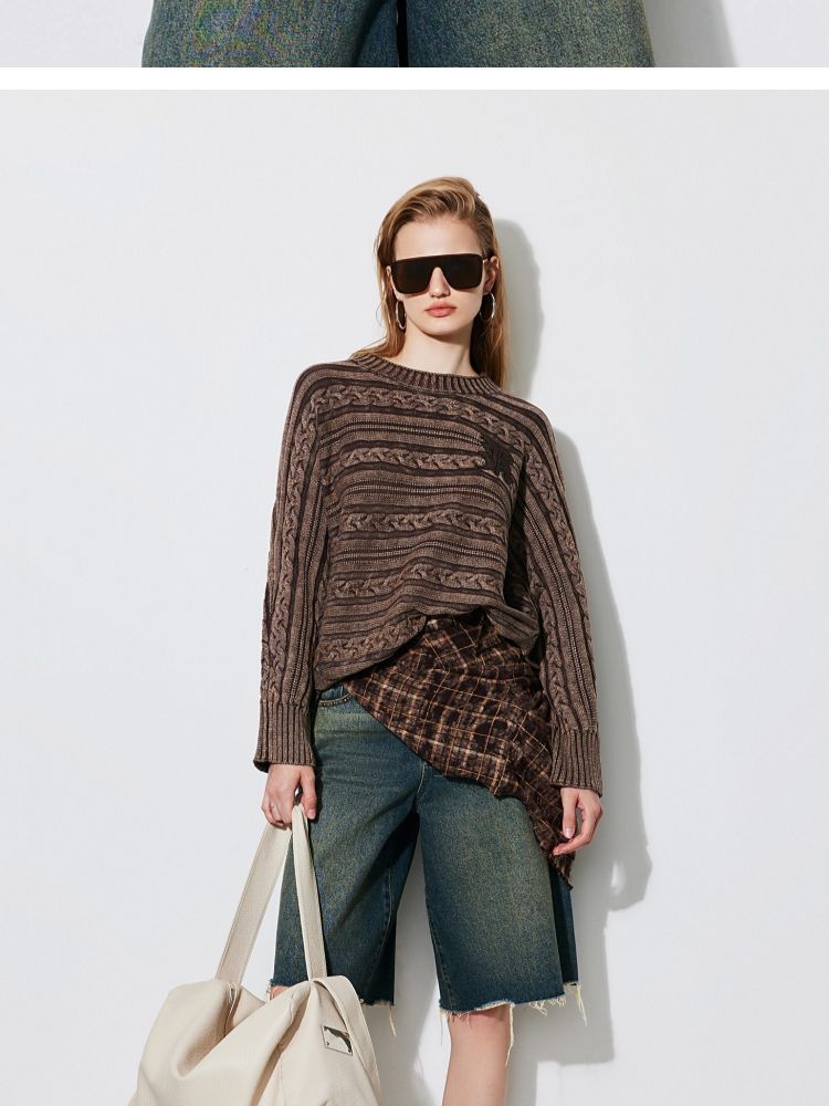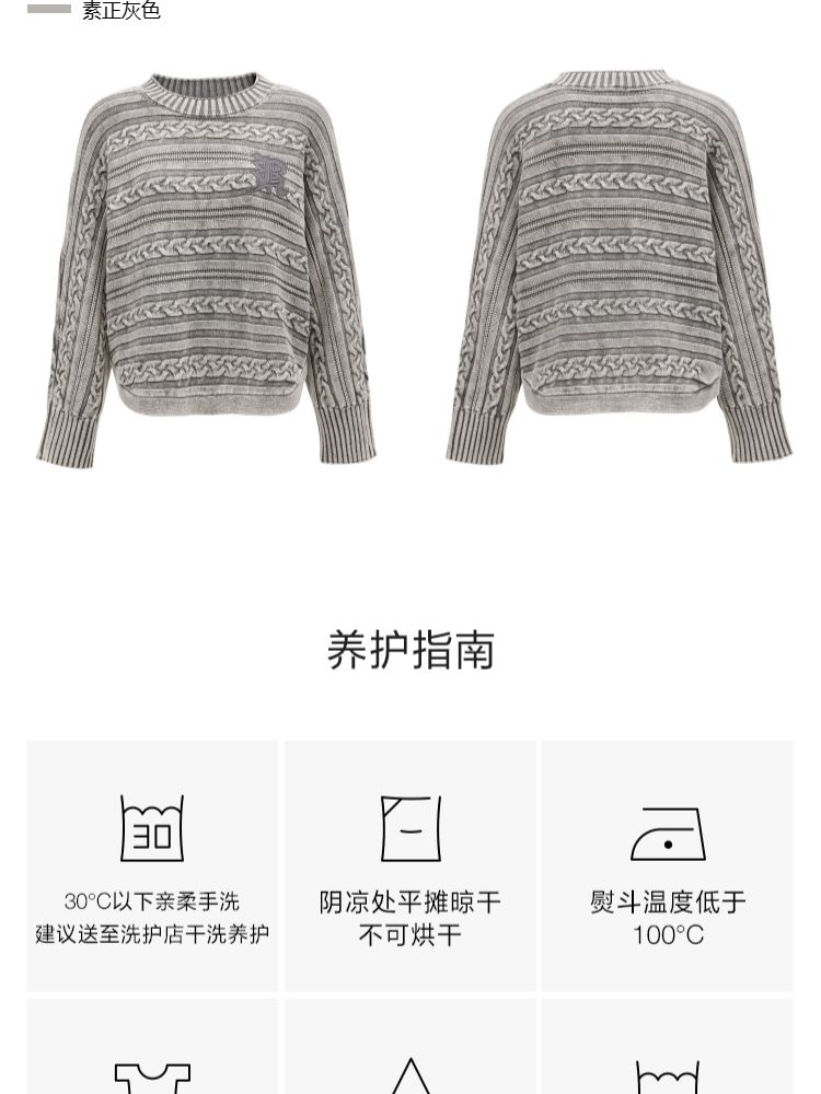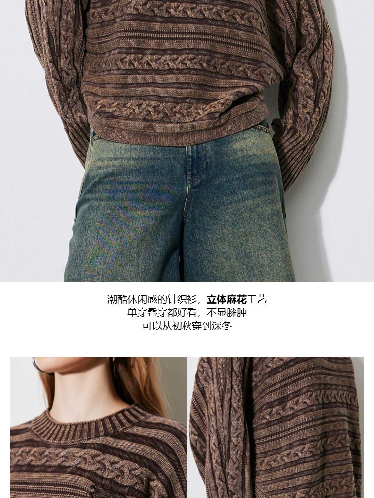 【复古水洗】春季潮流休闲宽松显瘦圆领长袖针织衫女 741466