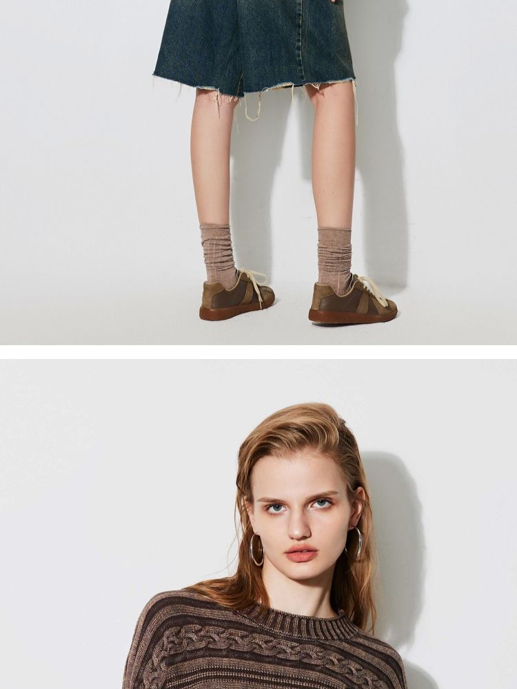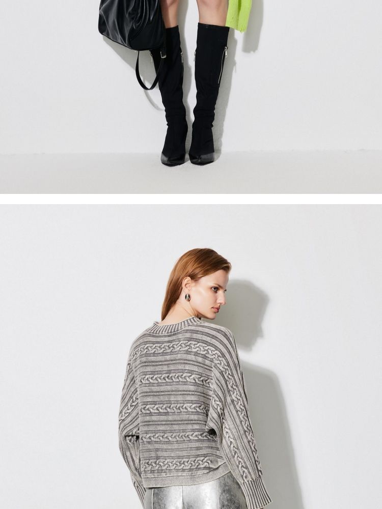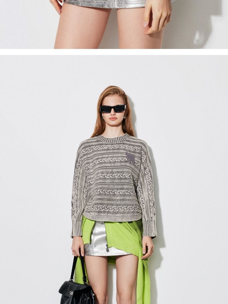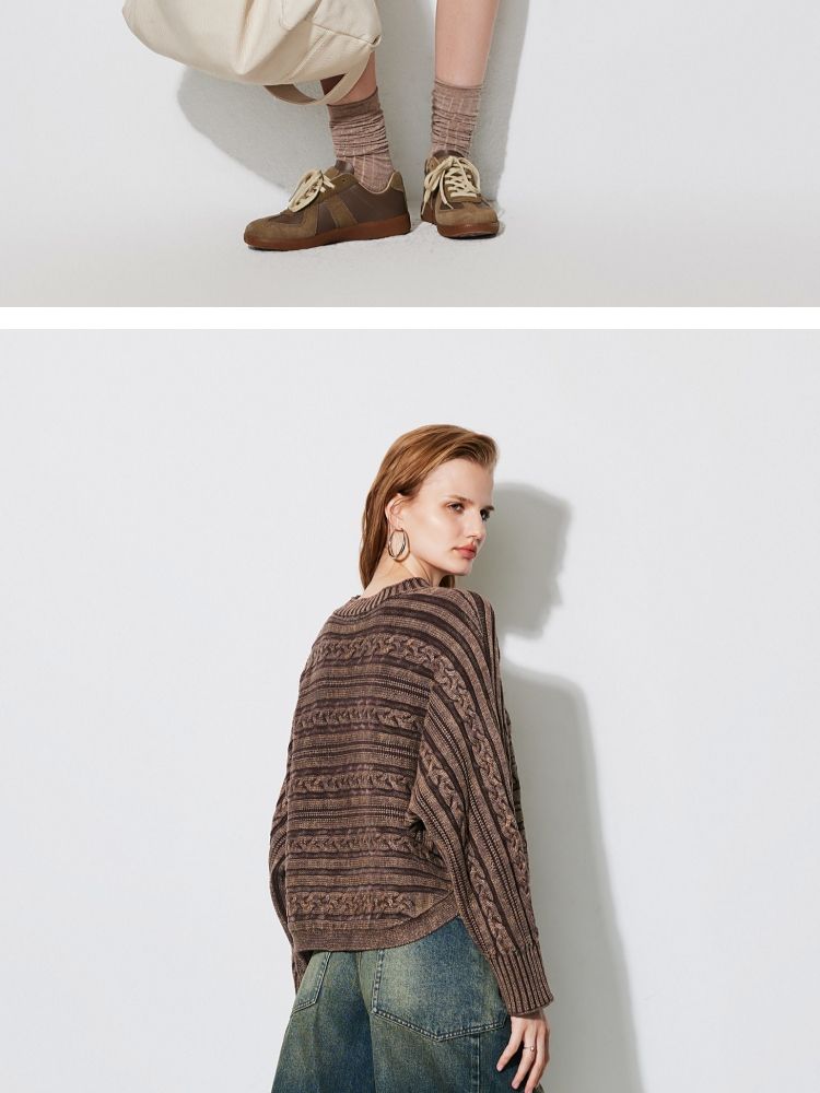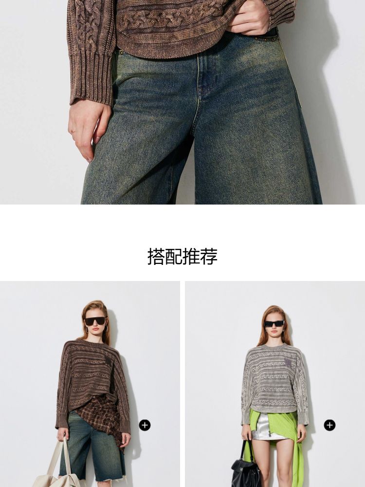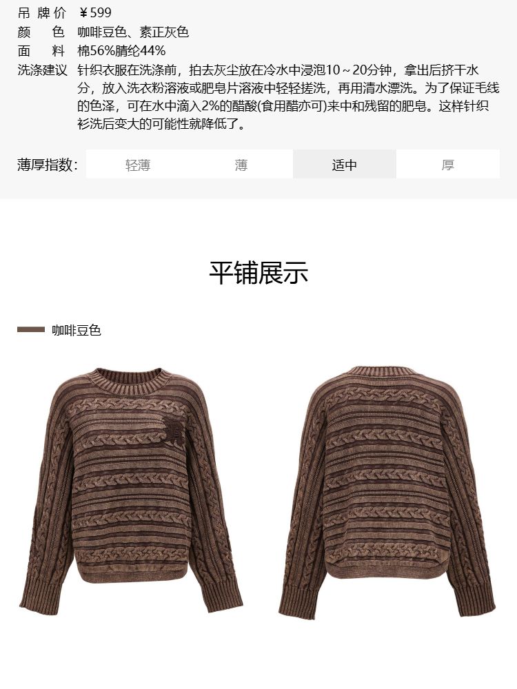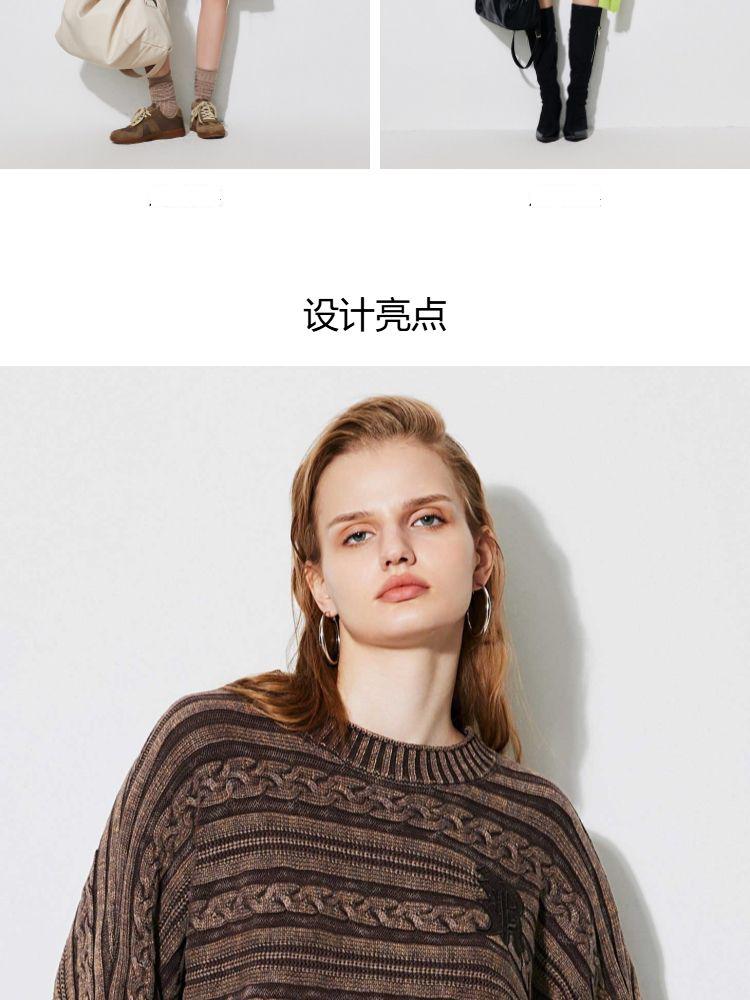 商品名称:【复古水洗】春季潮流休闲宽松显瘦圆领长袖针织衫女 741466