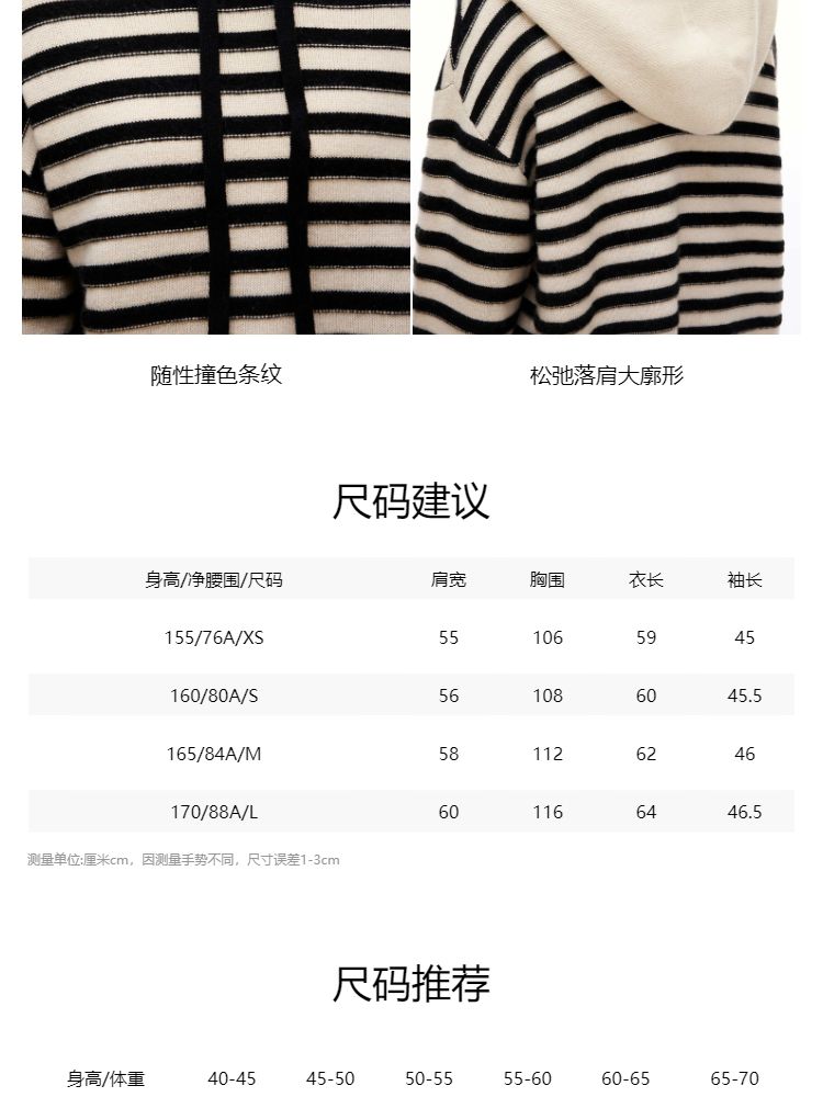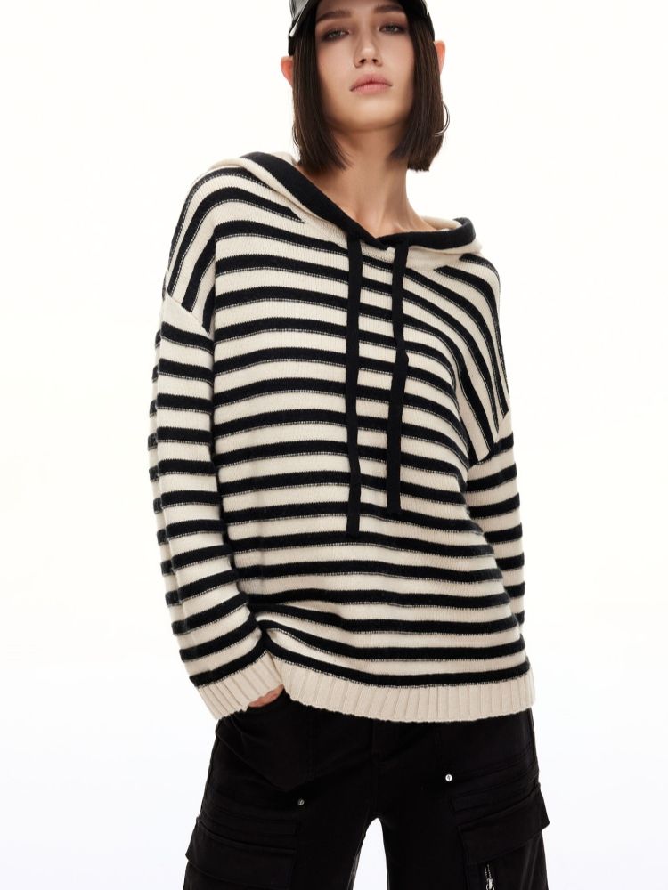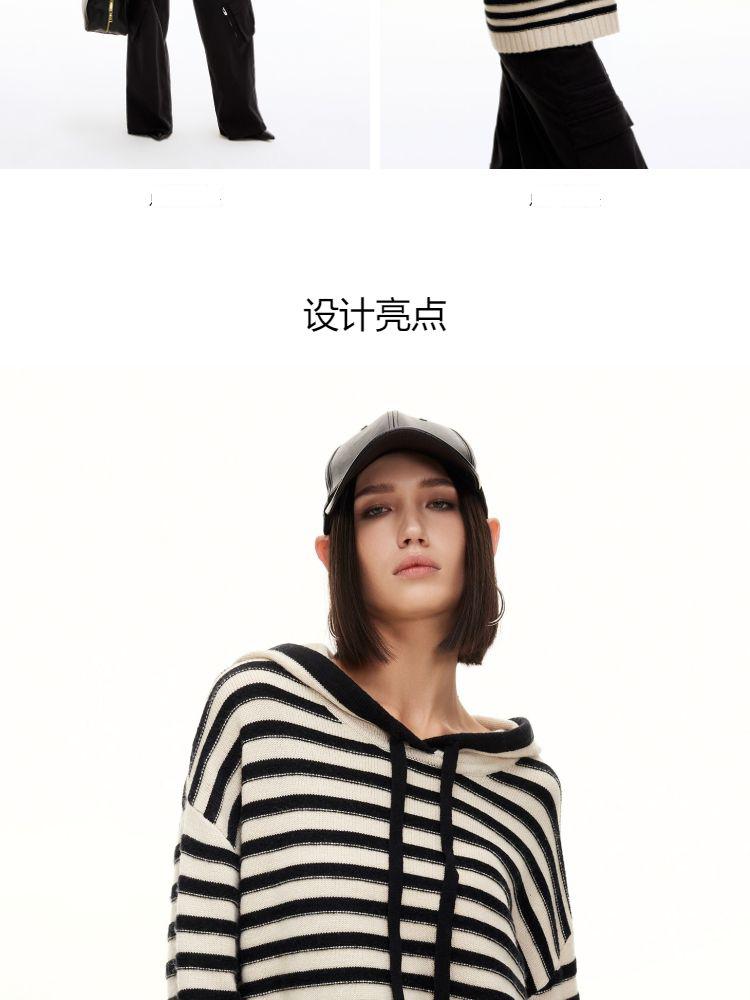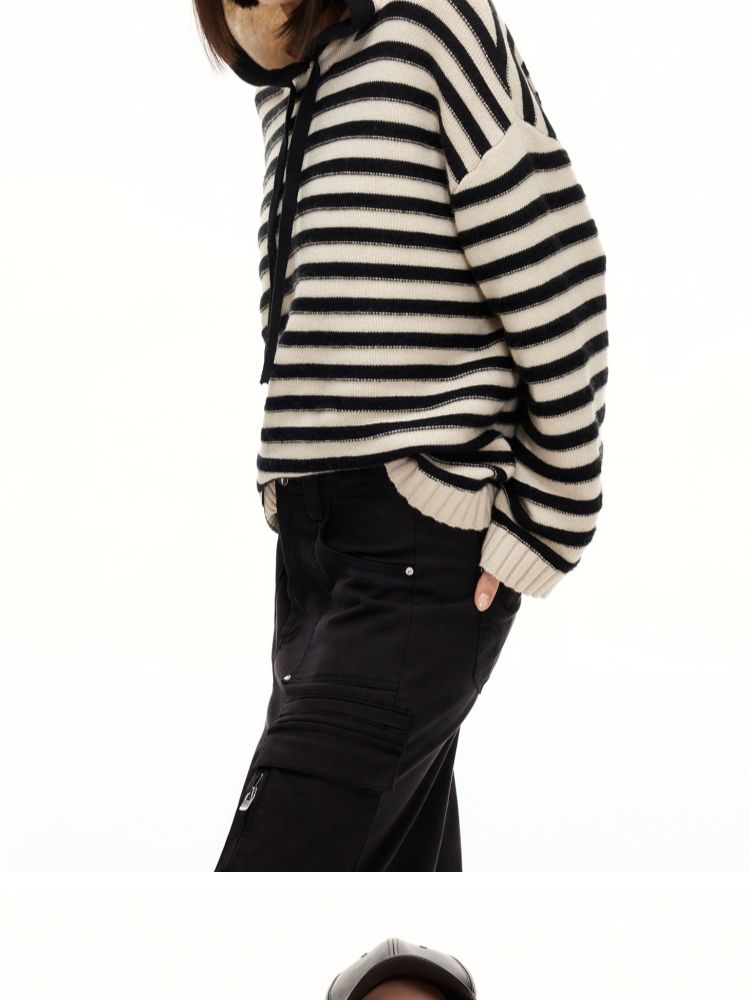 商品名称:【宽松落肩】2025春季随性慵懒风条纹连帽针织衫女 104410
