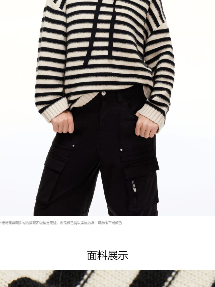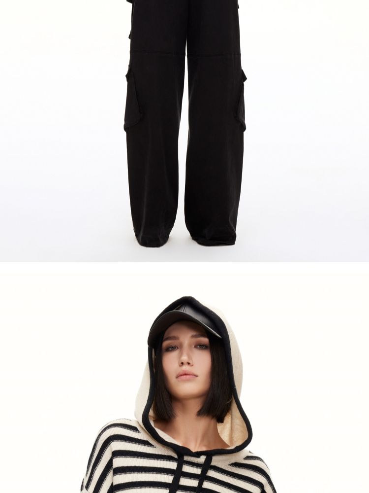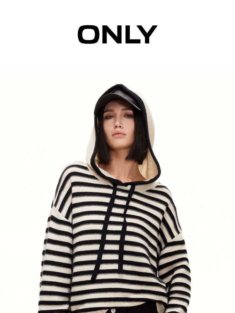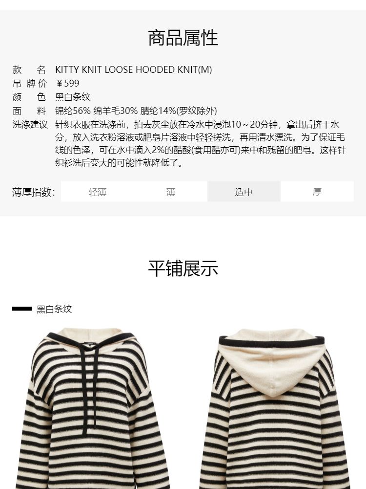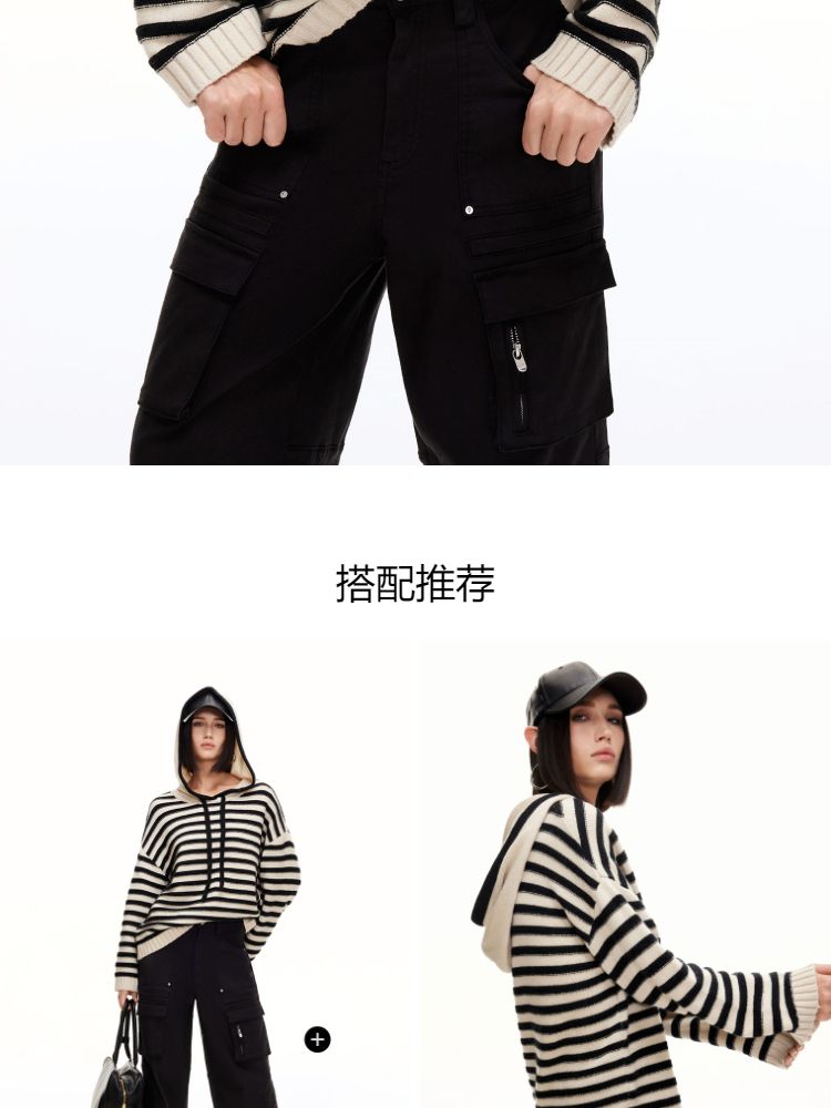 商品名称:【宽松落肩】2025春季随性慵懒风条纹连帽针织衫女 104410