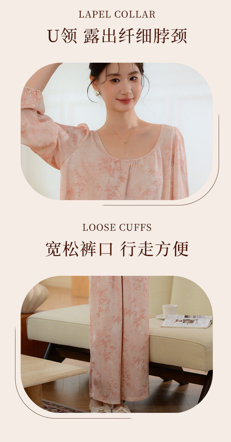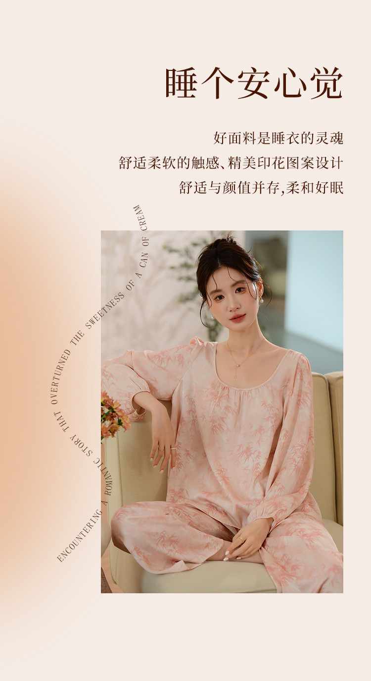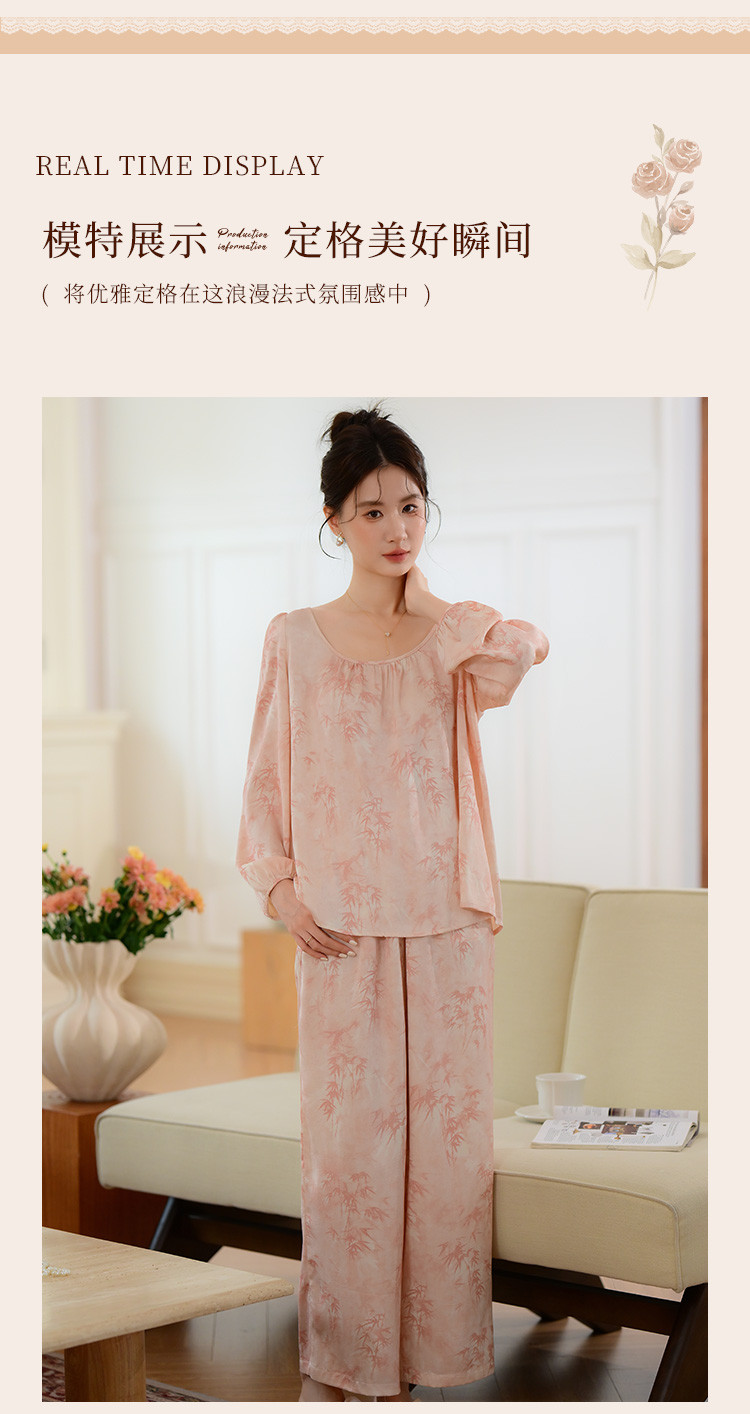 商品名称:【法式轻奢】长袖长裤睡衣女士春秋款高级感印花家居服套装可外穿 077195