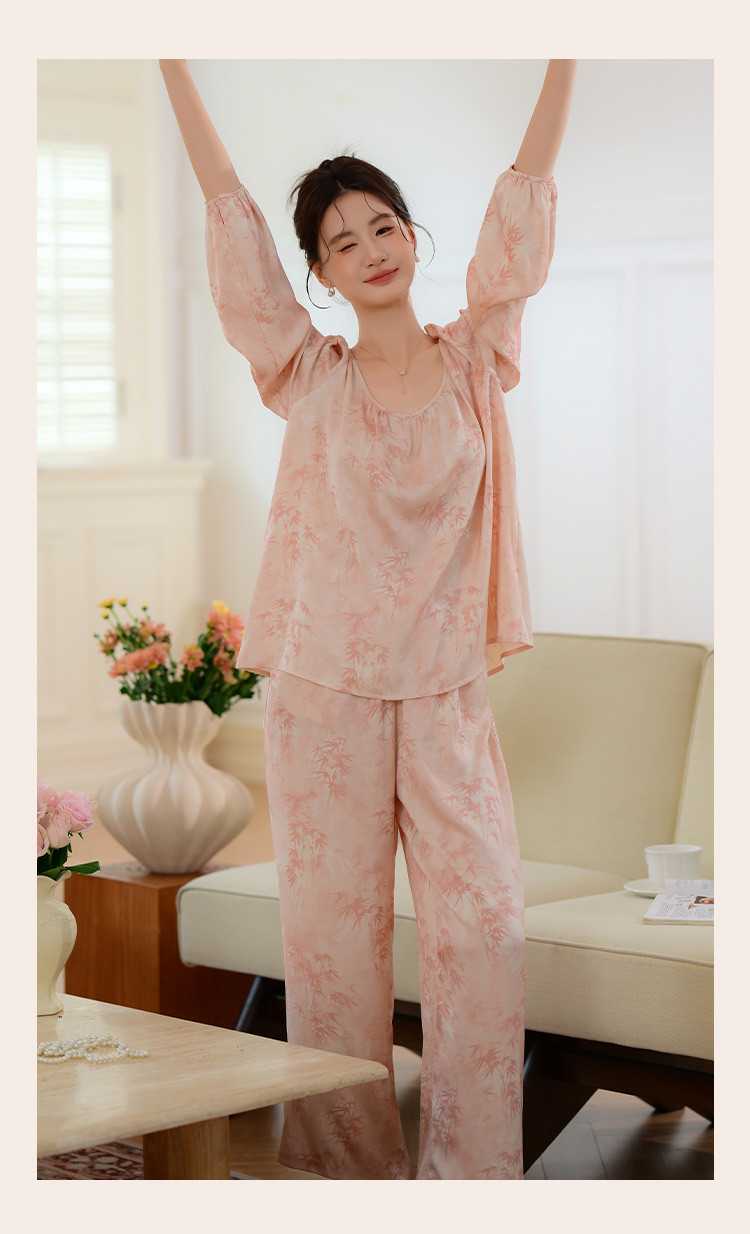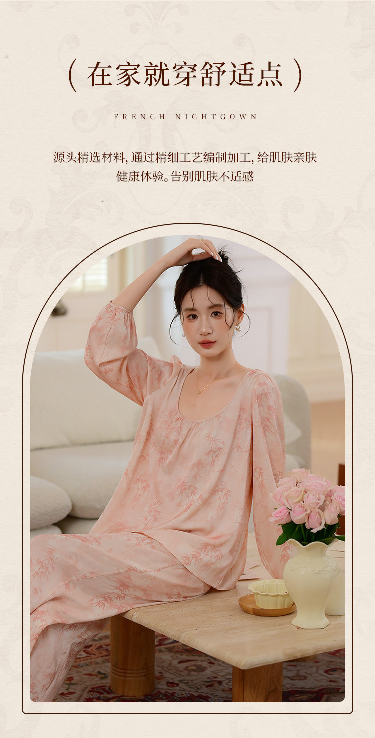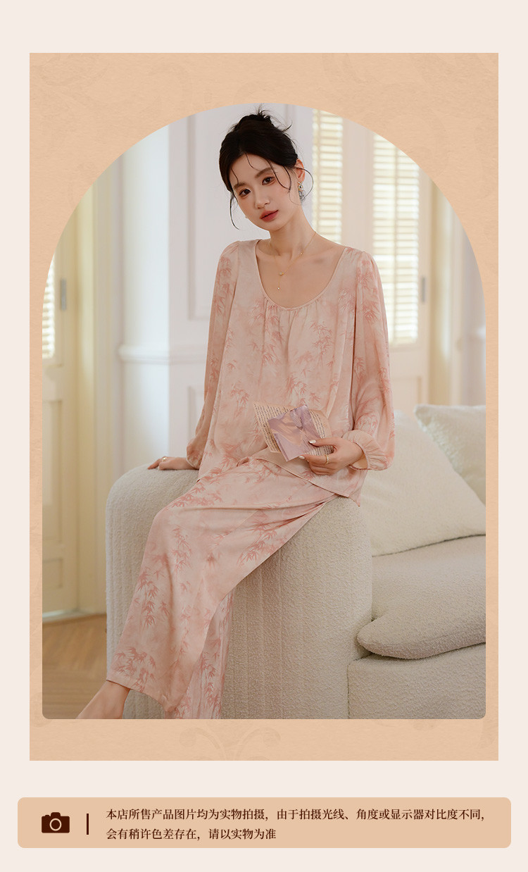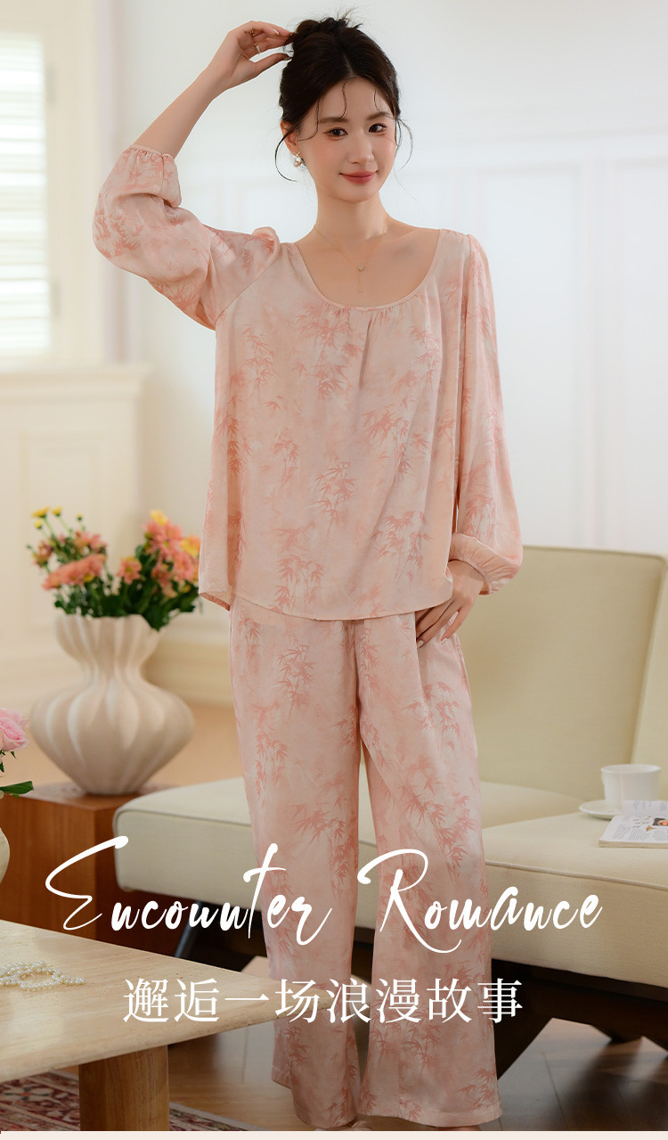 商品名称:【法式轻奢】长袖长裤睡衣女士春秋款高级感印花家居服套装可外穿 077195