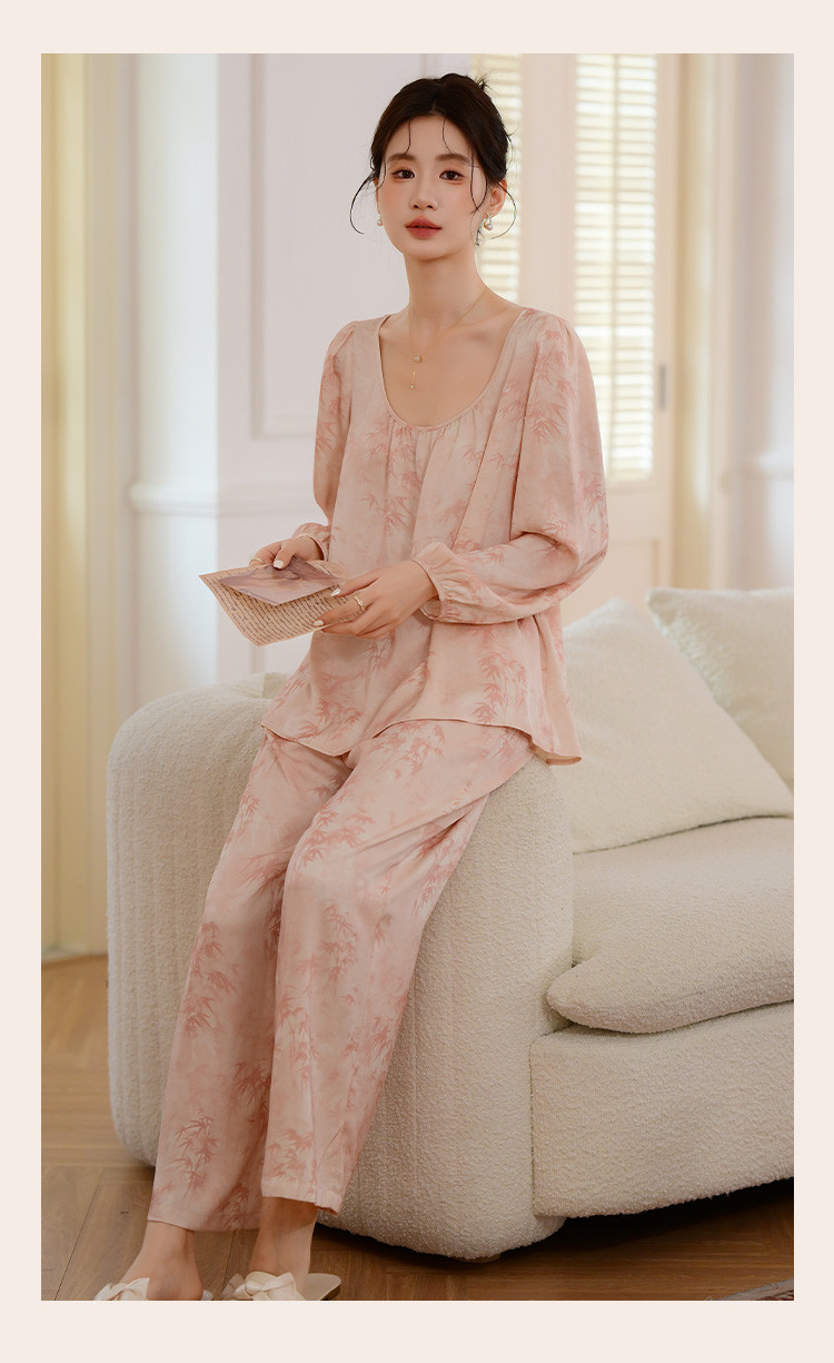 【法式轻奢】长袖长裤睡衣女士春秋款高级感印花家居服套装可外穿 077195