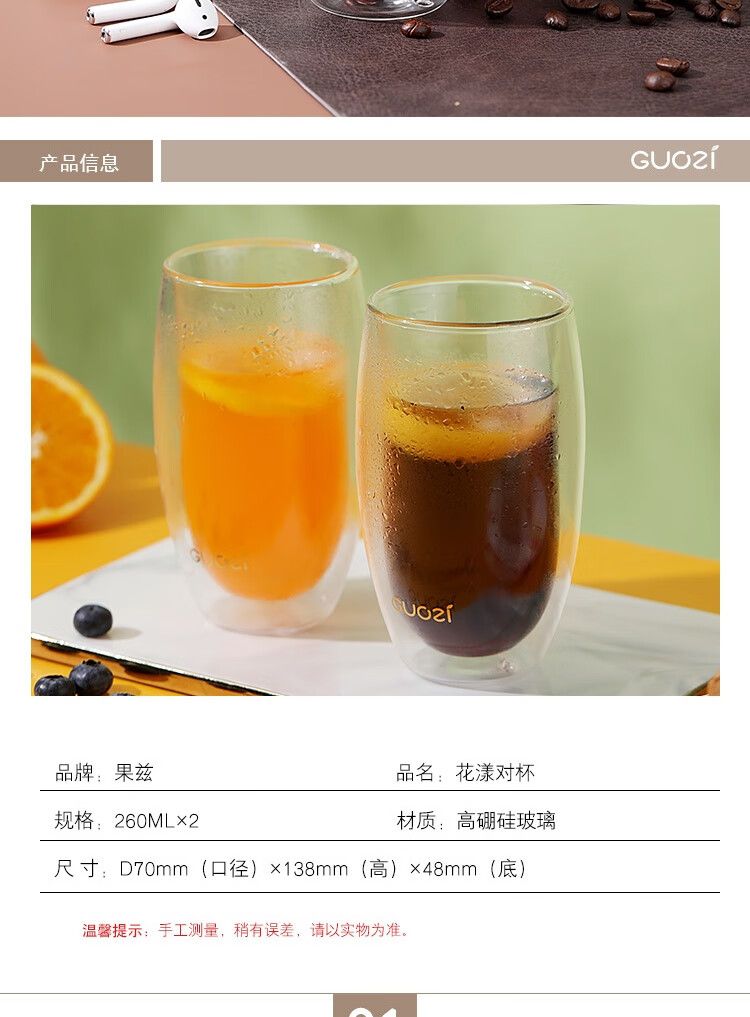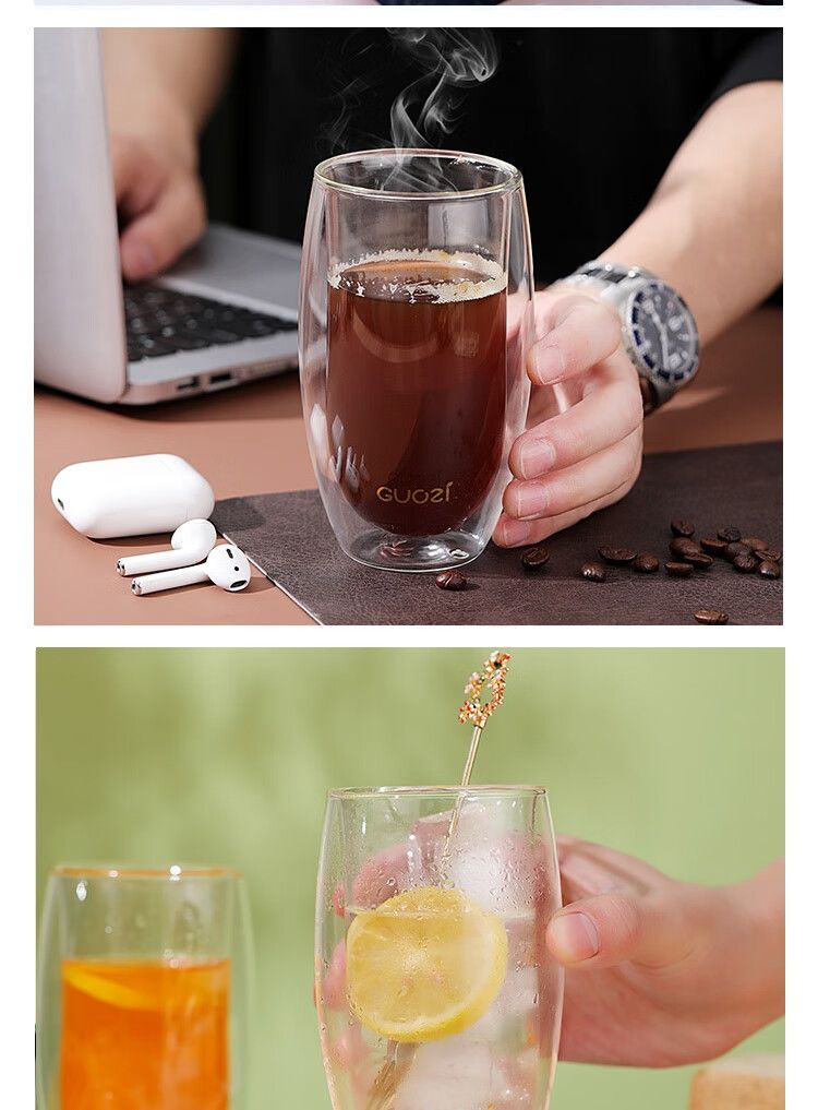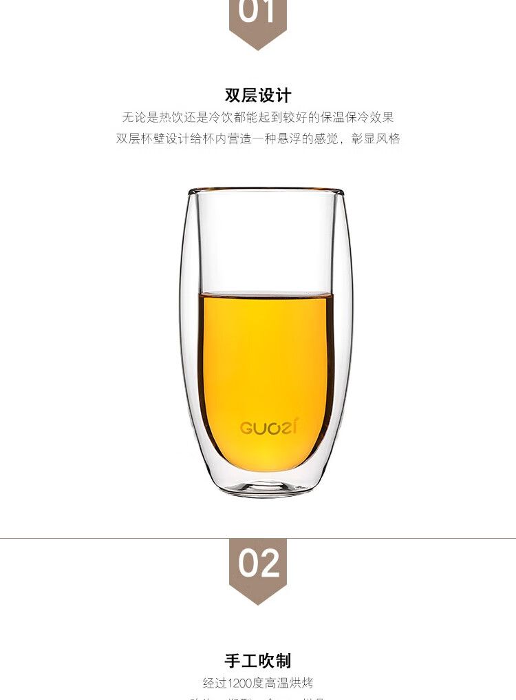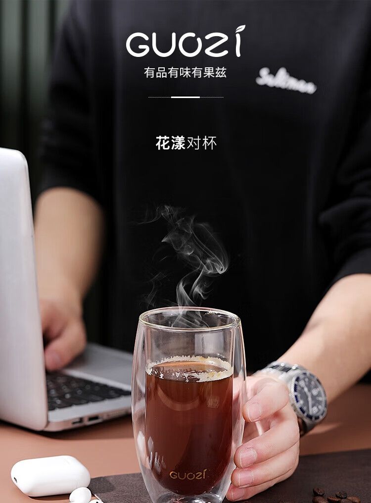 商品名称:果兹 GUOZI 花漾对杯 GZ-S34双层玻璃杯居家喝水杯子办公双层隔热茶杯简约情侣对杯套装2个装