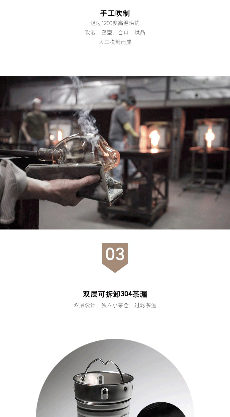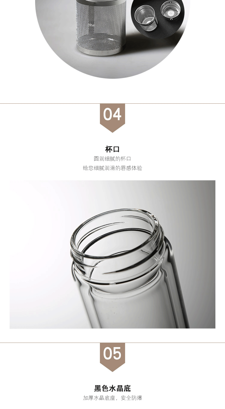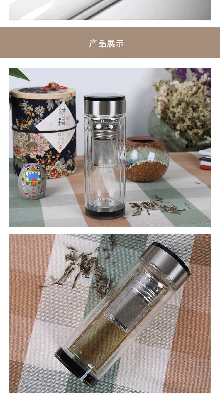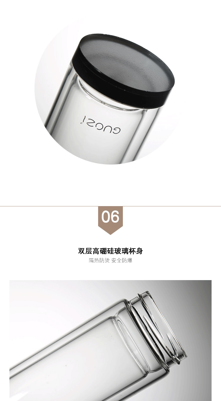果兹(GUOZI)雅风保温杯双层玻璃杯高级感耐热防爆茶水分离泡茶杯专用男士水杯微保温GZ-S43