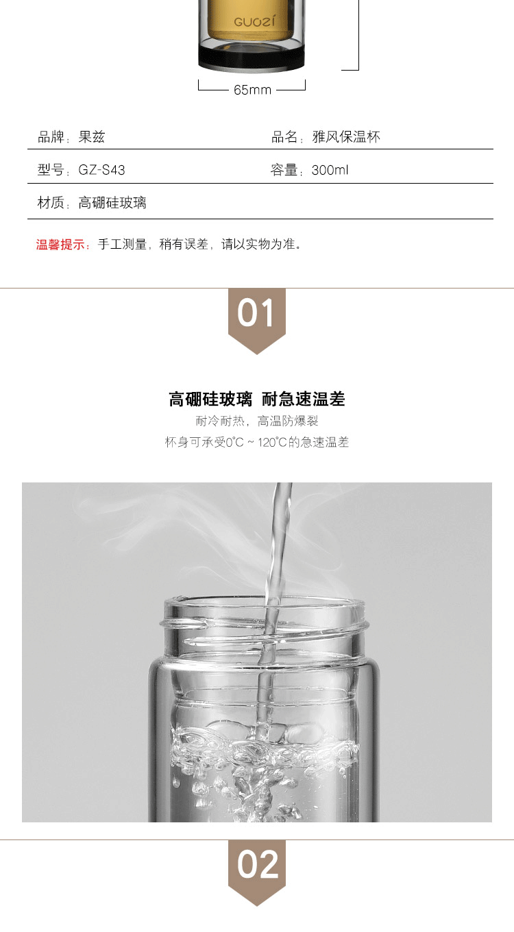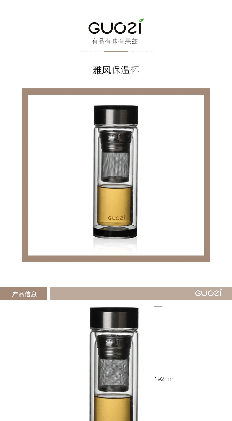商品名称:果兹(GUOZI)雅风保温杯双层玻璃杯高级感耐热防爆茶水分离泡茶杯专用男士水杯微保温GZ-S43