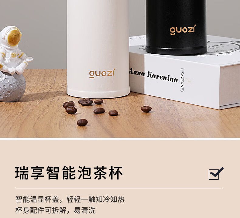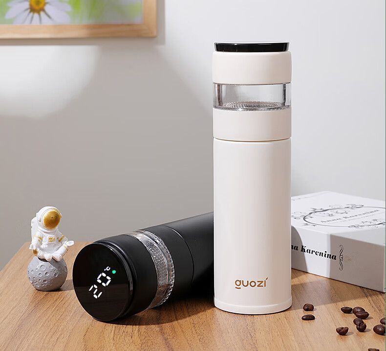 果兹(GUOZI)瑞享智能泡茶杯GZ-B53 不锈钢智能温显杯下茶仓350ml+上茶仓100ml
