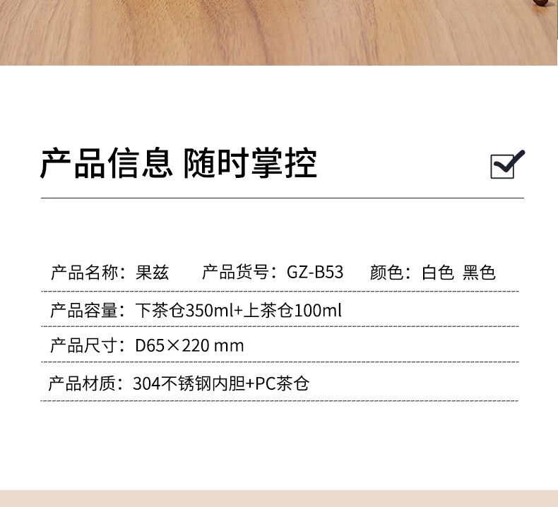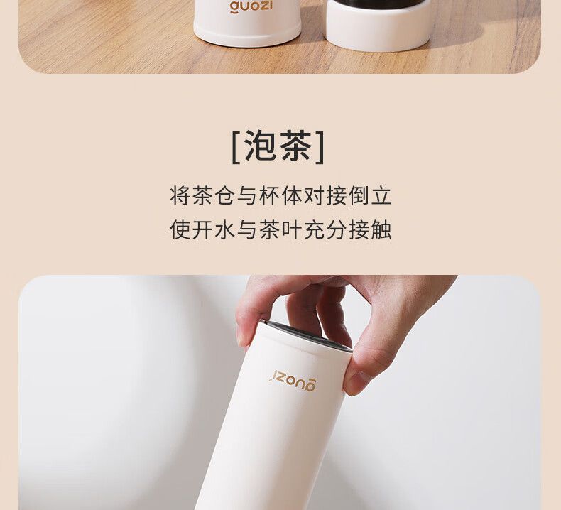 商品名称:果兹(GUOZI)瑞享智能泡茶杯GZ-B53 不锈钢智能温显杯下茶仓350ml+上茶仓100ml