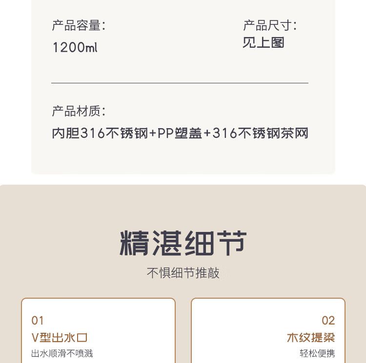 商品名称:果兹(GUOZI)怀瑾焖茶壶GZ-B60 316不锈钢内胆茶水分离保温壶1200ml
