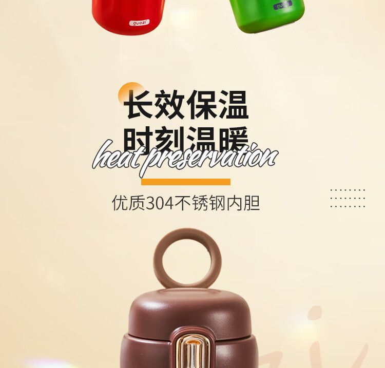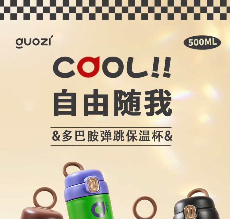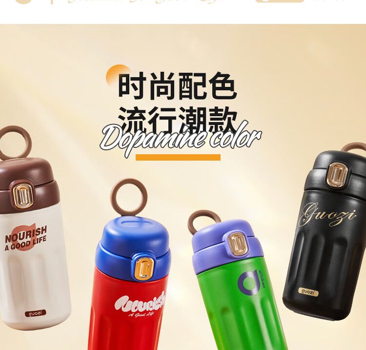 GUOZI果兹多巴胺弹跳保温杯GZ-B54时尚男女学生高颜值不锈钢杯子500ml