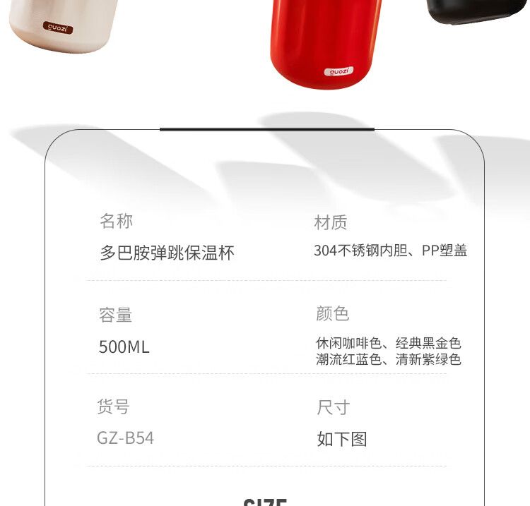 商品名称:GUOZI果兹多巴胺弹跳保温杯GZ-B54时尚男女学生高颜值不锈钢杯子500ml