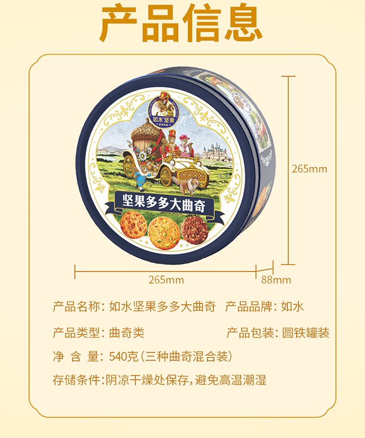 商品名称:如水坚果多多大曲奇(540g多多圆铁盒)