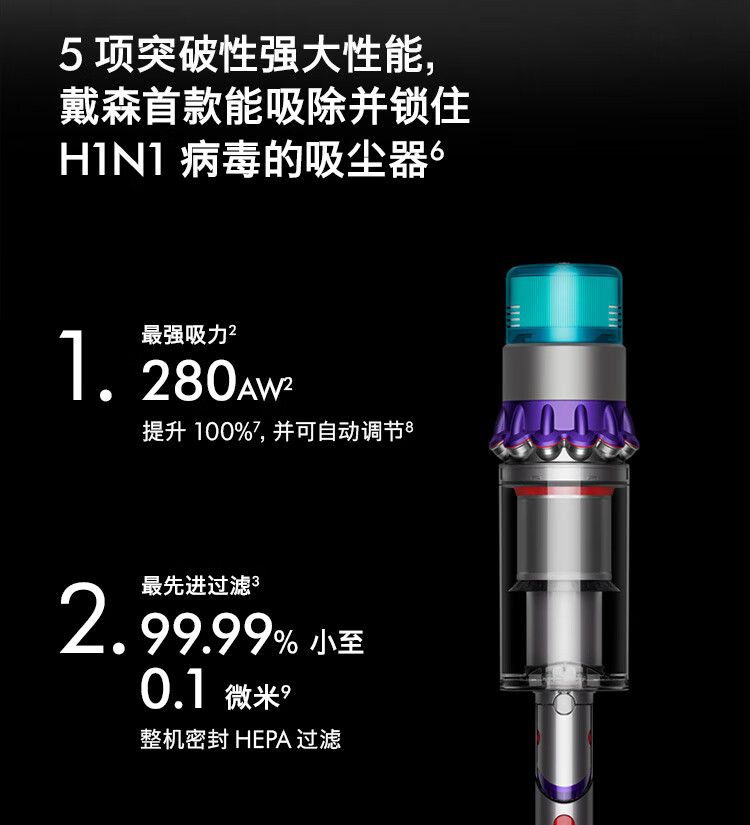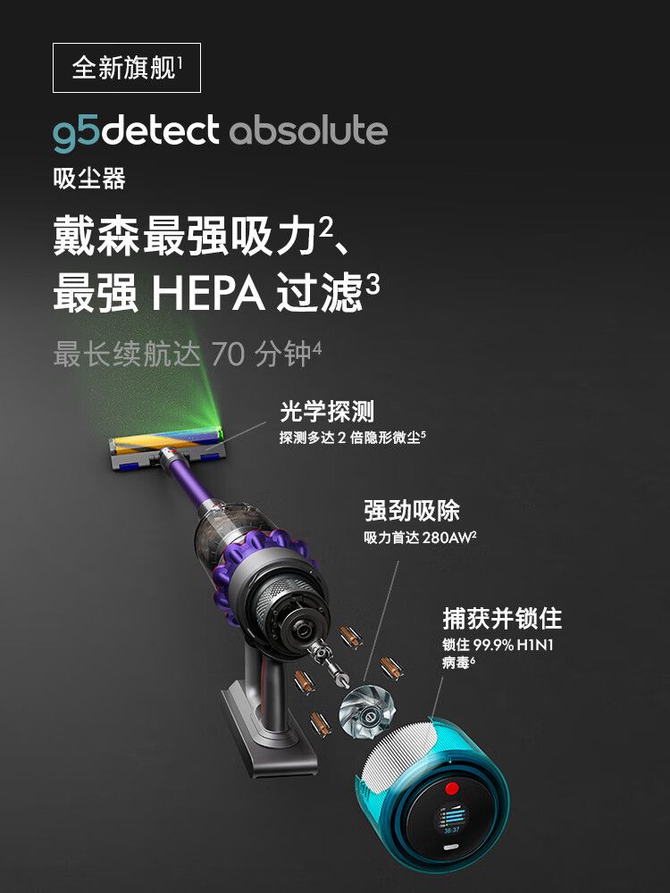 戴森(DYSON)G5 Detect Absolute手持无线吸尘器 除螨 宠物 家庭适用