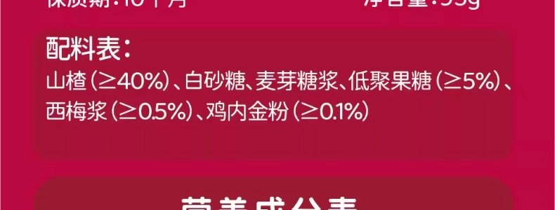 商品名称:小鹿蓝蓝 益生元山楂鸡内金糖葫芦 95g*2袋