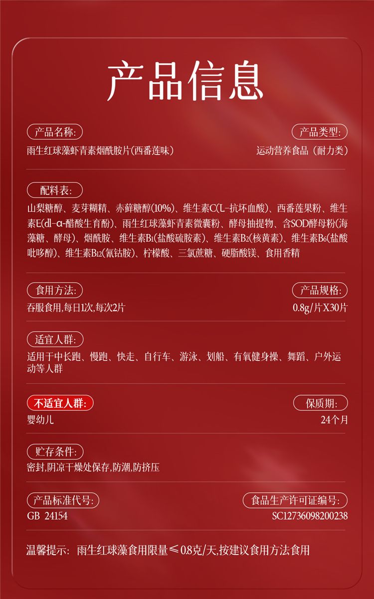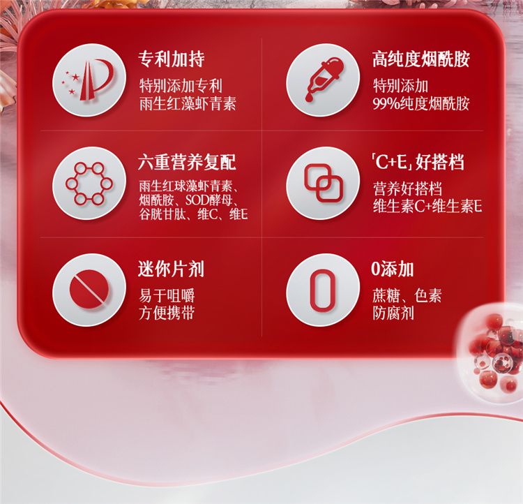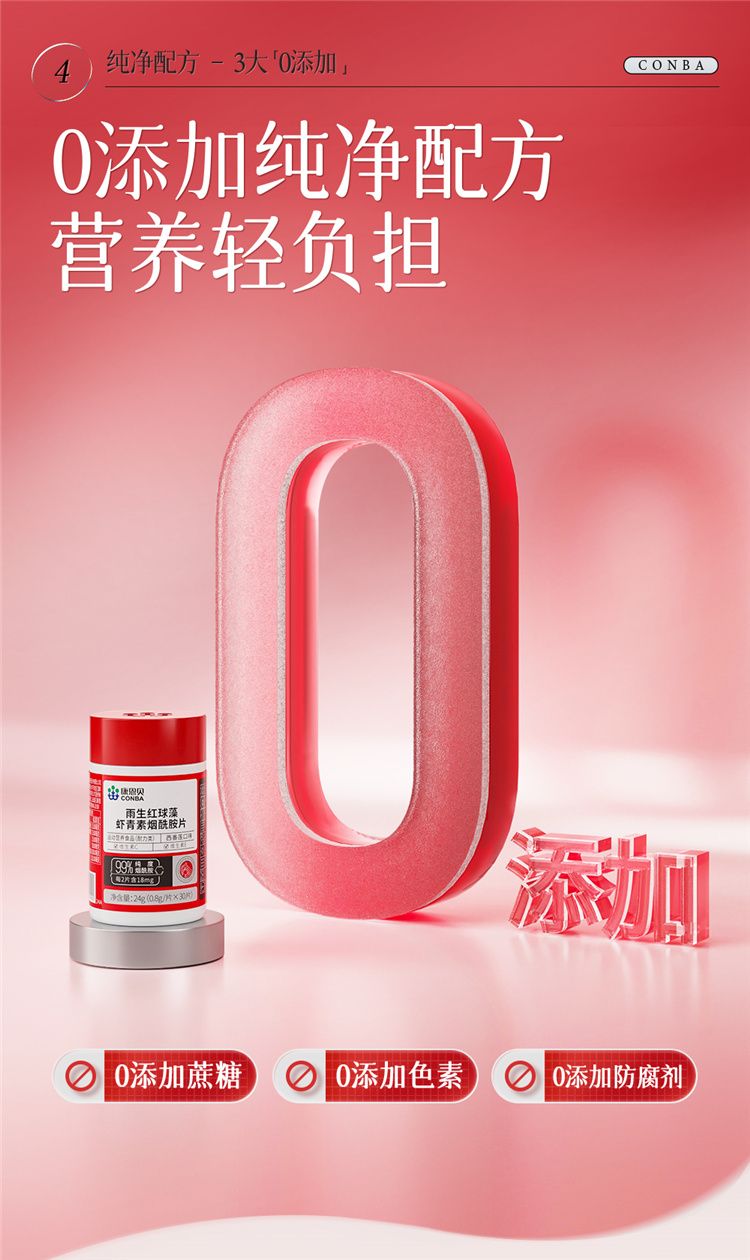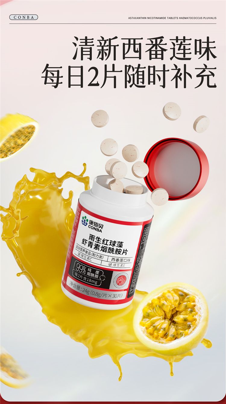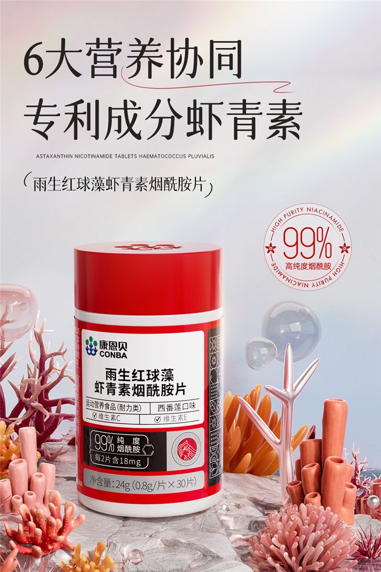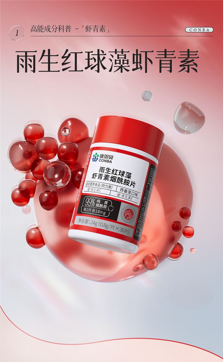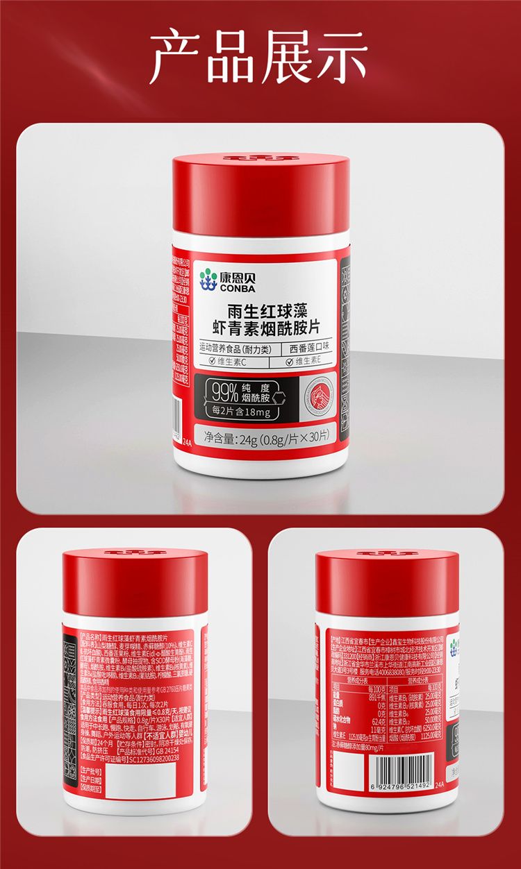 商品名称:【三瓶装】康恩贝 雨生红球藻虾青素烟酰胺片 0.8g*30片/瓶