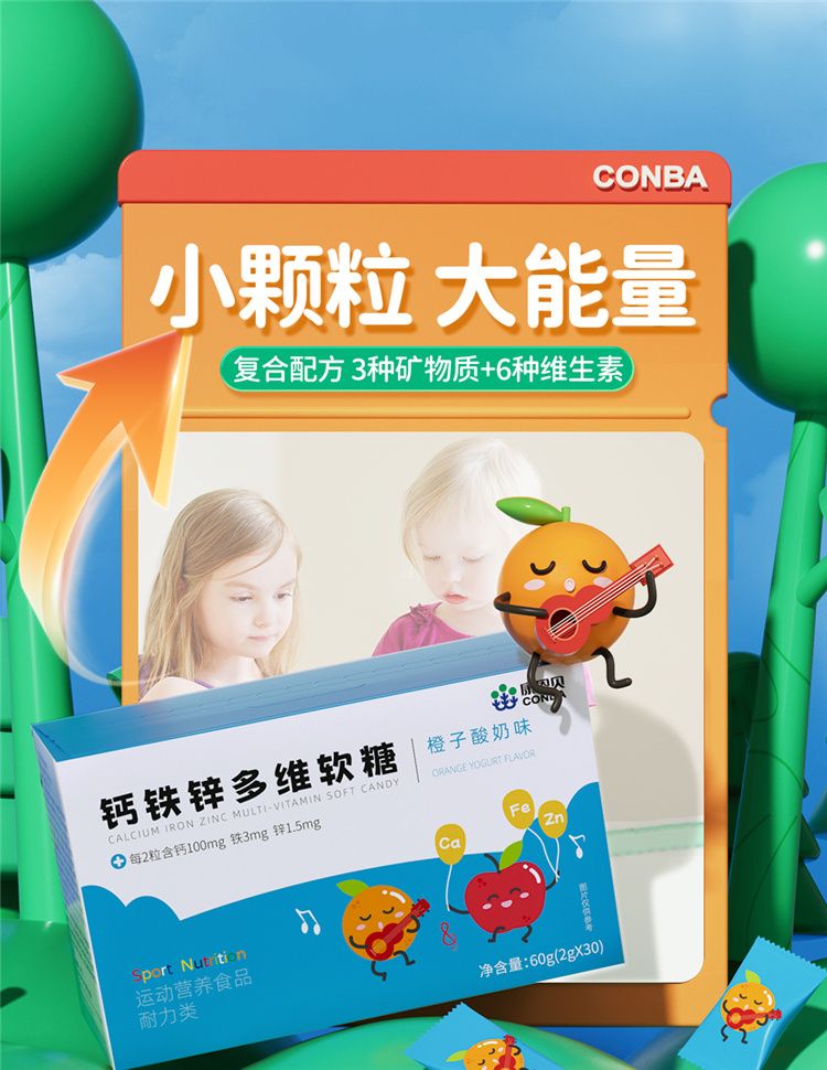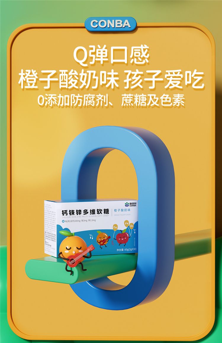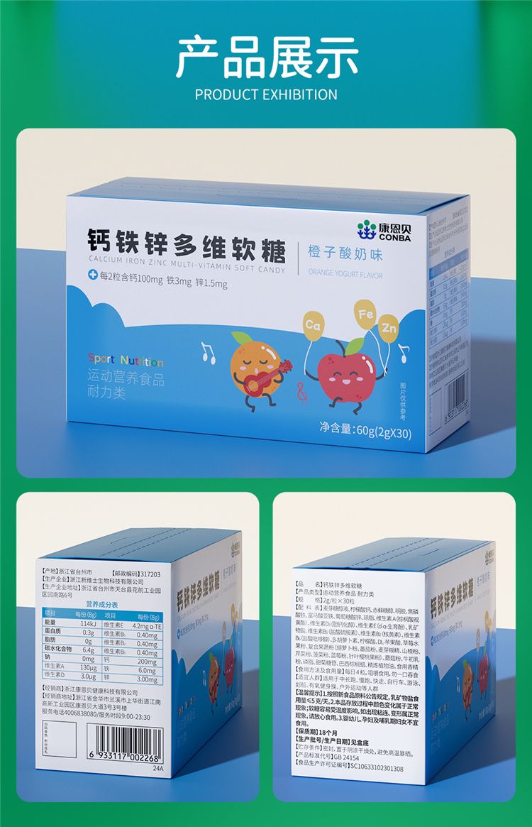 商品名称:【三瓶装】康恩贝 钙铁锌多维软糖 2g*30粒/盒