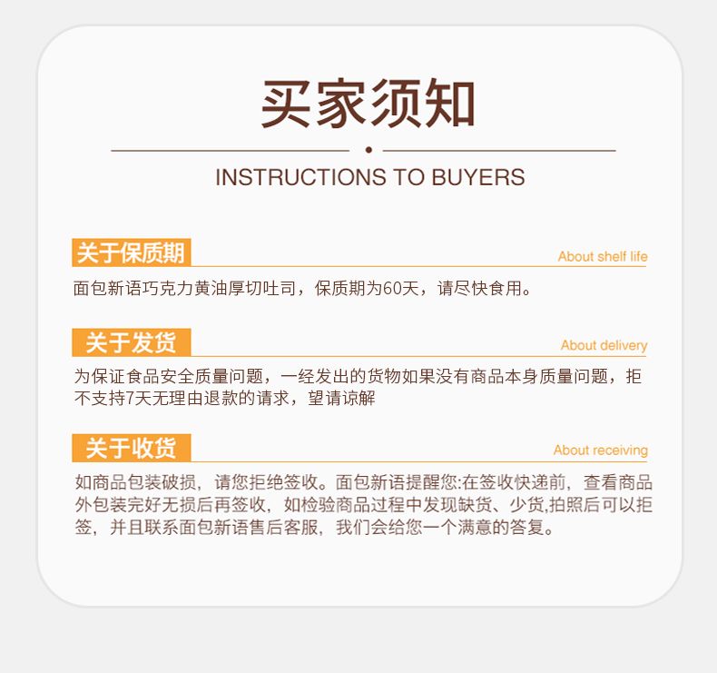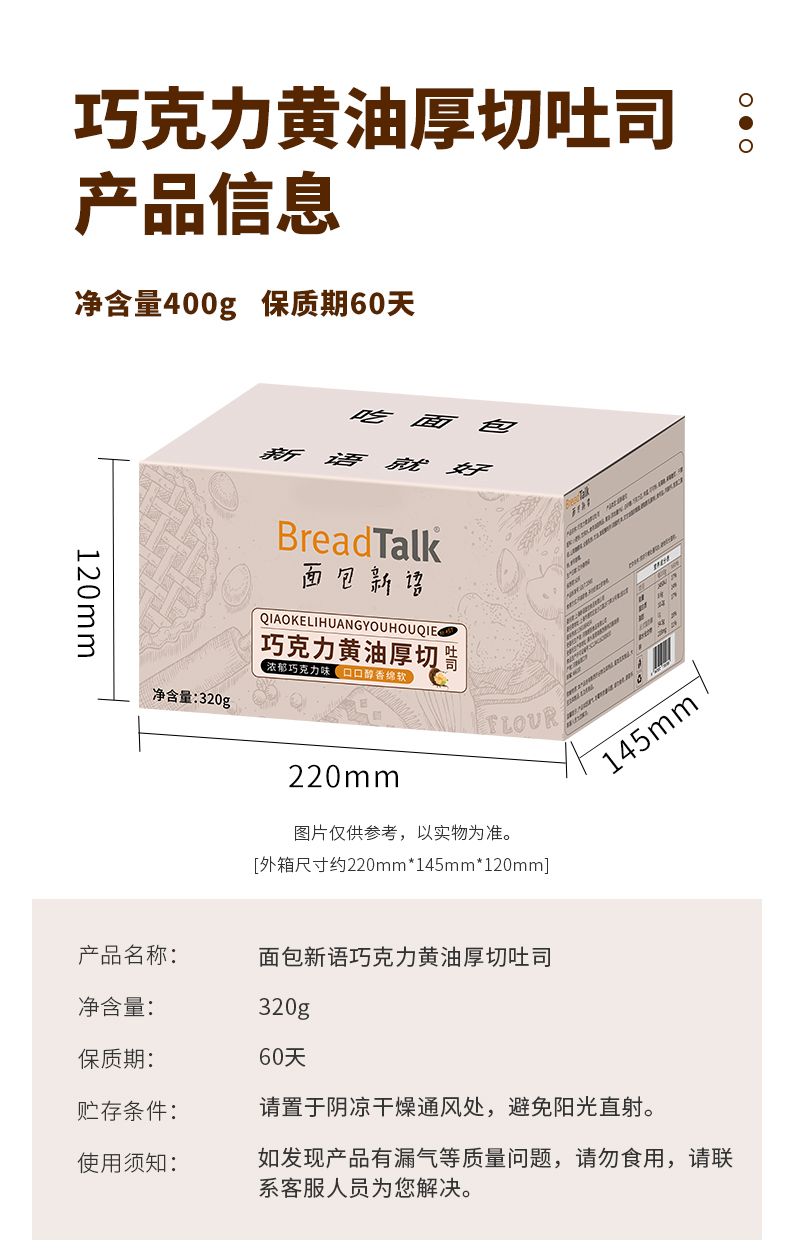商品名称:面包新语巧克力黄油厚切吐司320g*3箱(共15包)