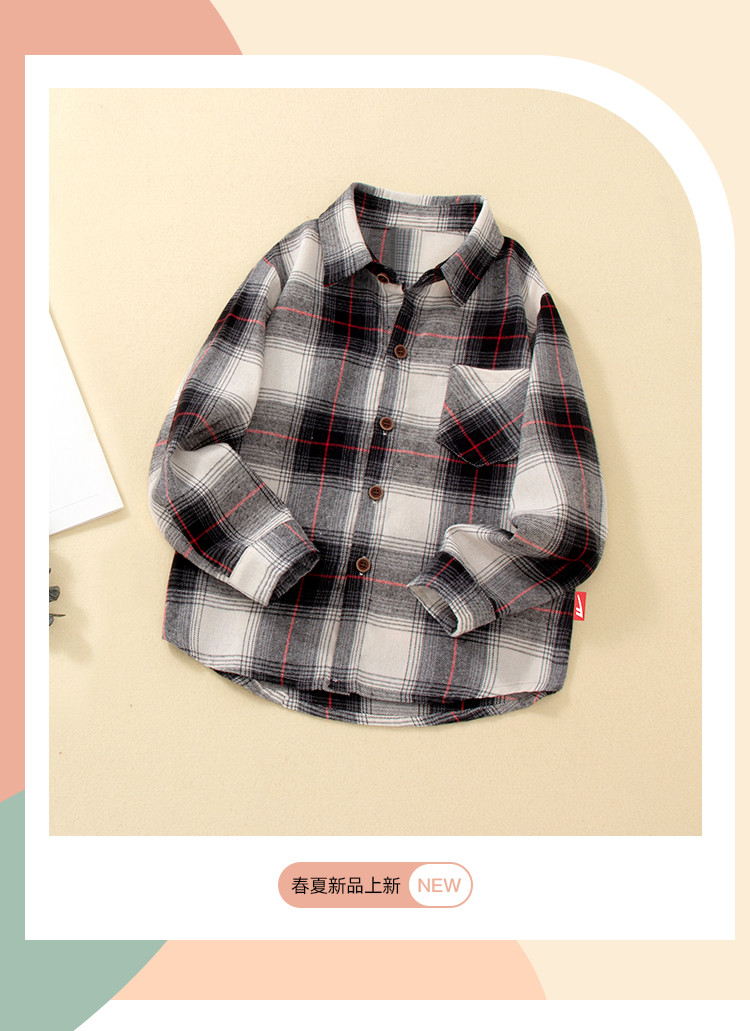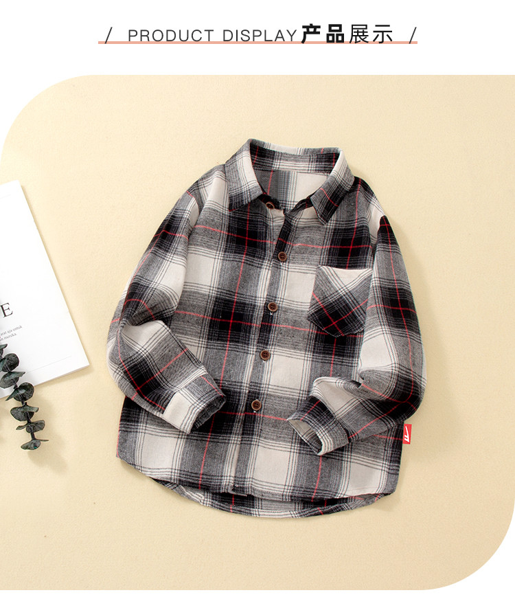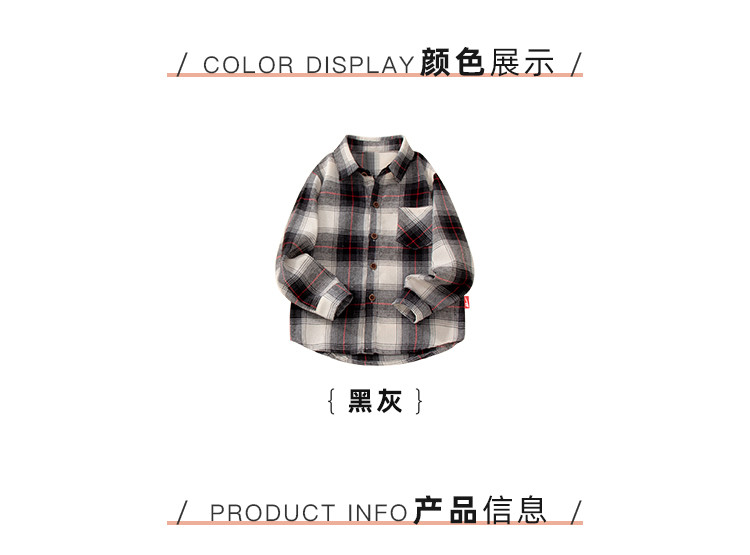 商品名称:【加绒可选】春季男童中大童时尚休闲灰色格纹儿童衬衫 610451