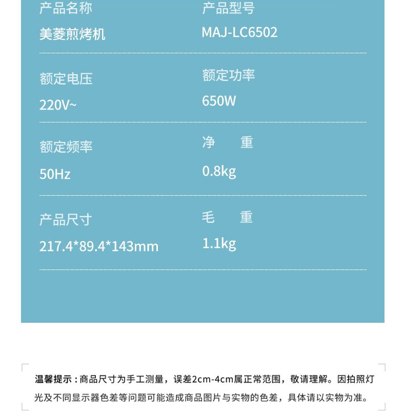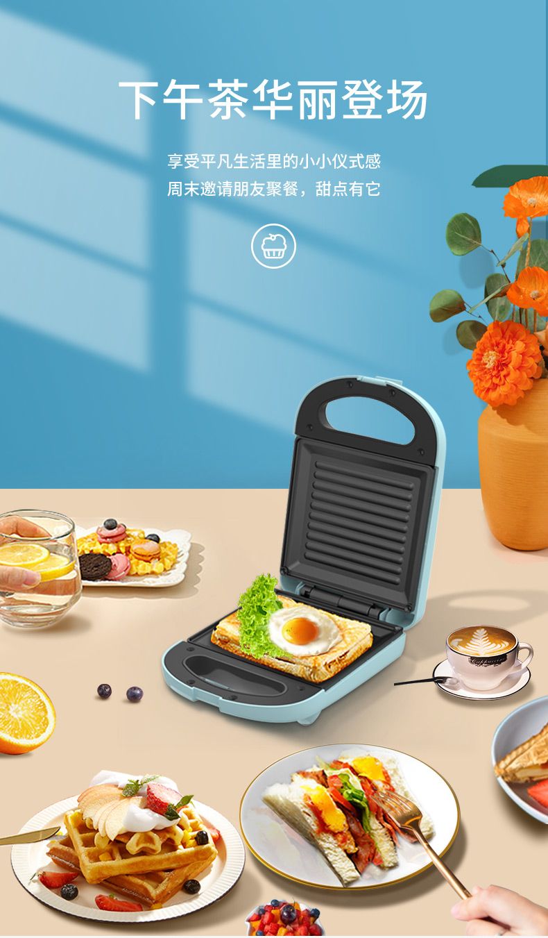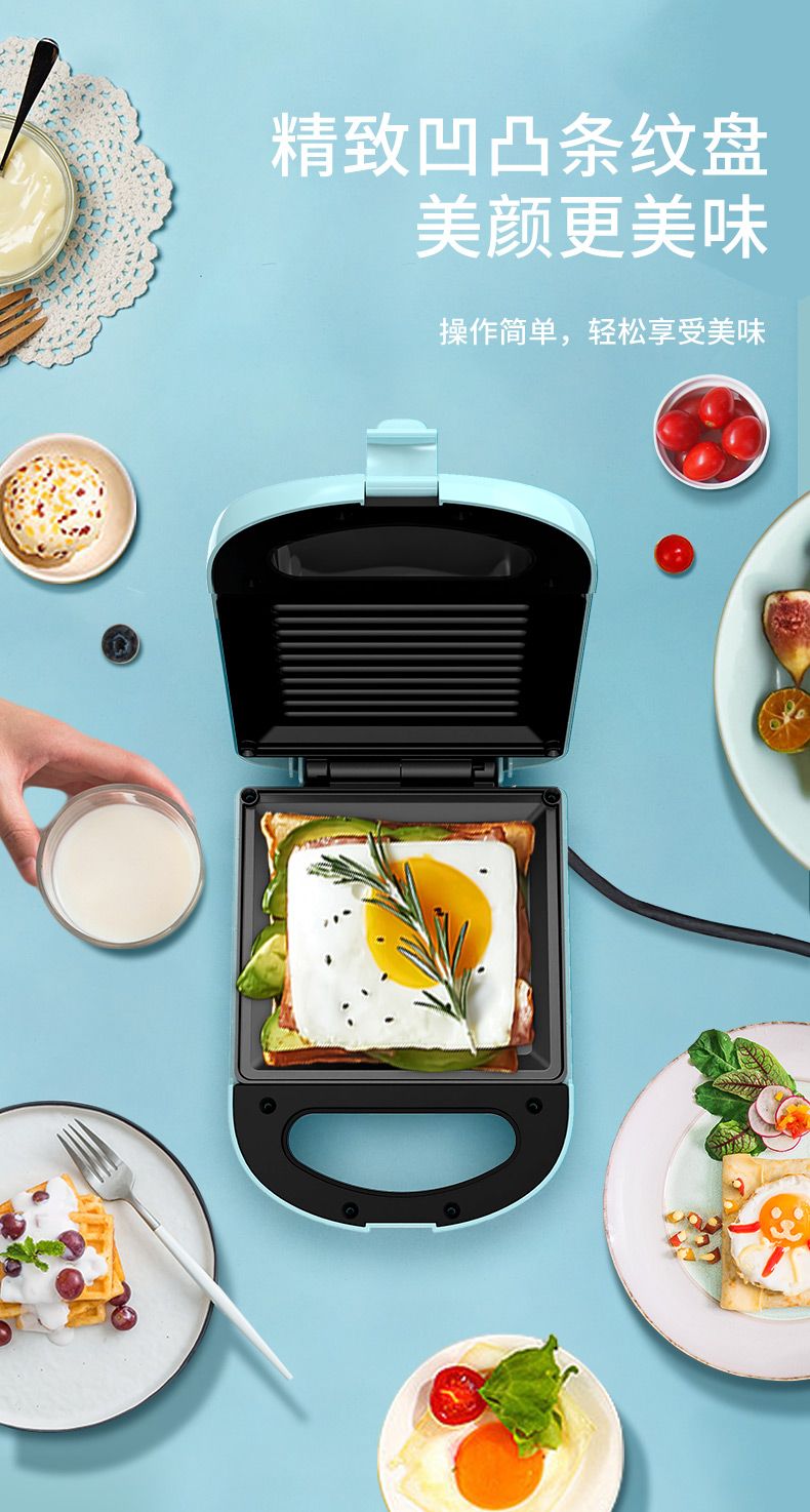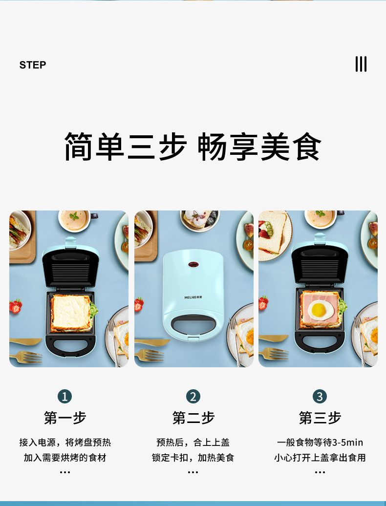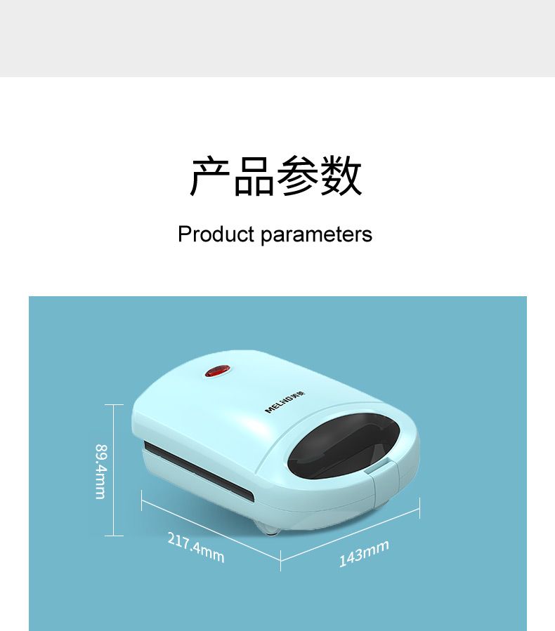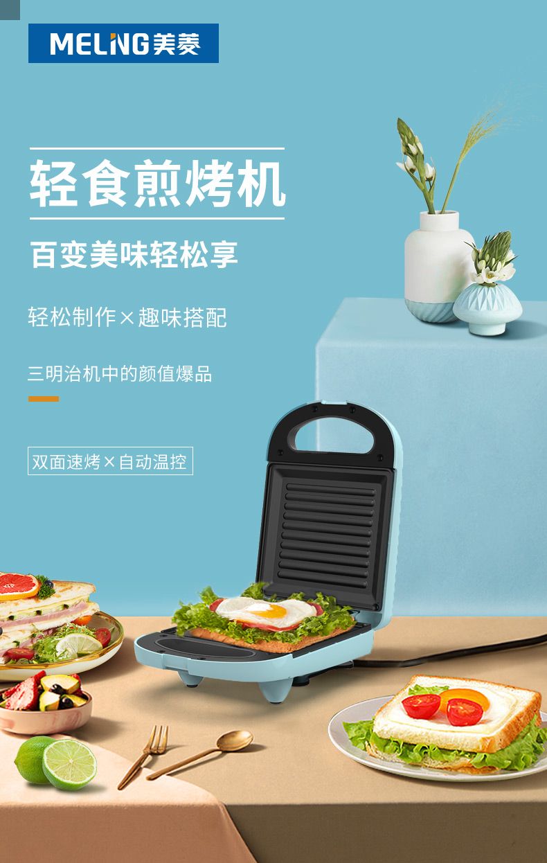 商品名称:美菱(MELING)早餐机三明治机轻食煎烤机双面速烤自动烘培蓝色 MAJ-LC6502