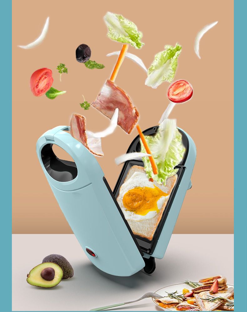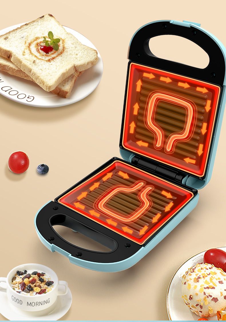 美菱(MELING)早餐机三明治机轻食煎烤机双面速烤自动烘培蓝色 MAJ-LC6502