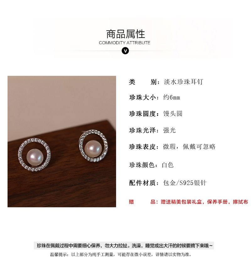 商品名称:圆满淡水珍珠耳环S925银耳针【A225】