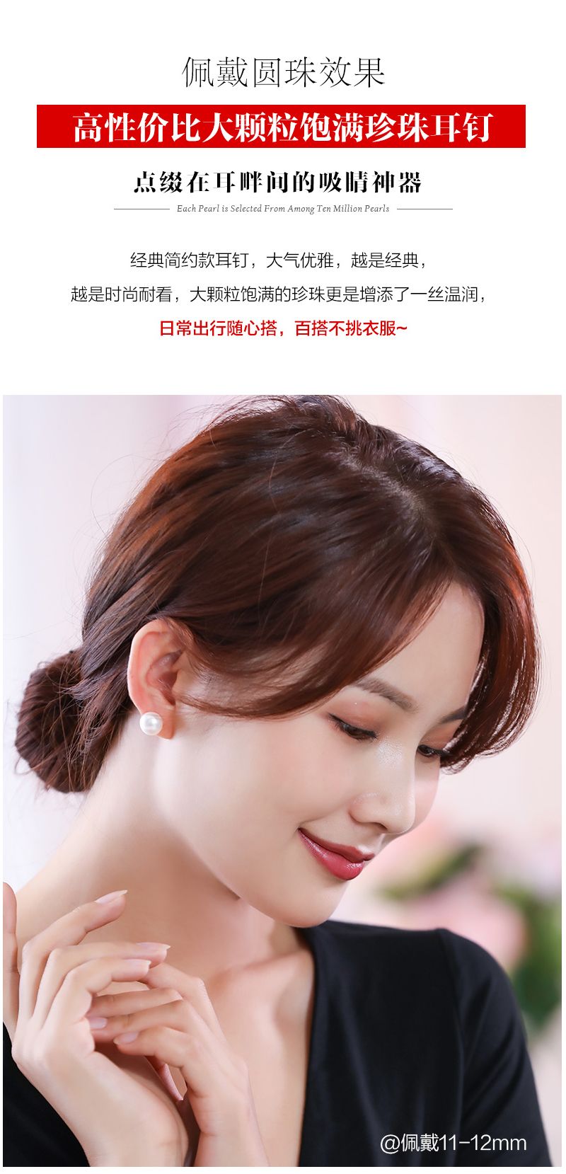 商品名称:大颗粒强光珍珠【耳钉】