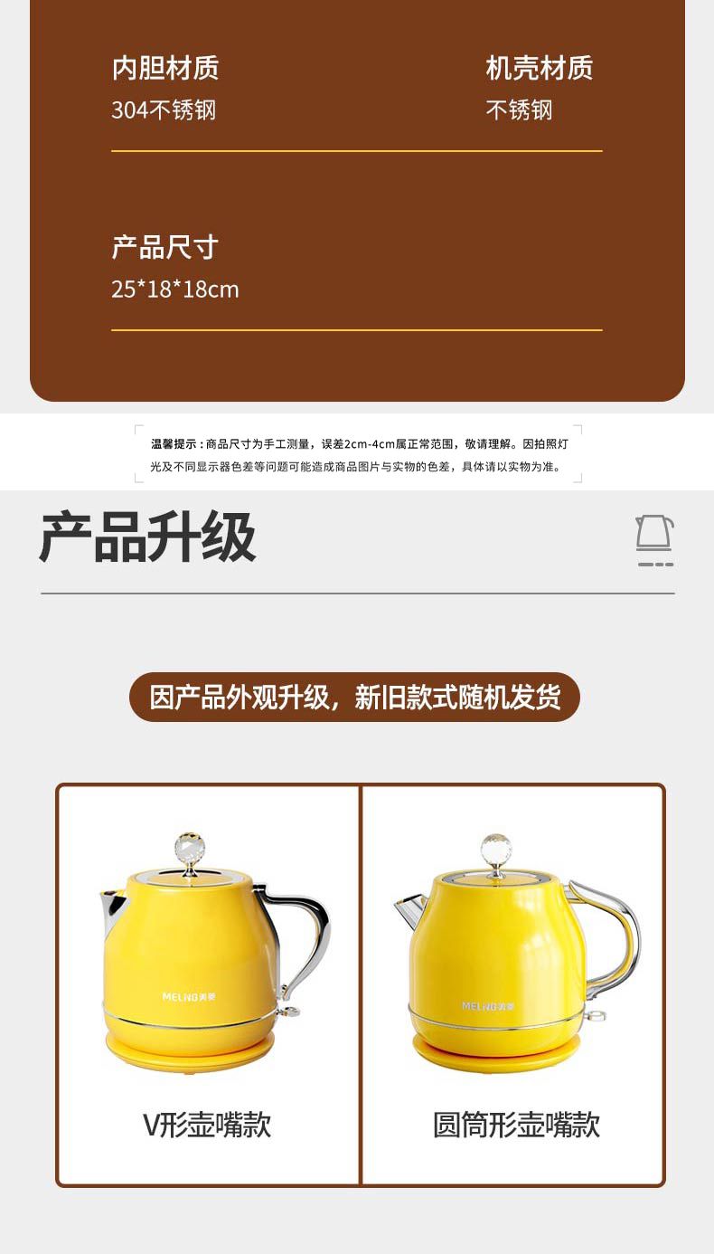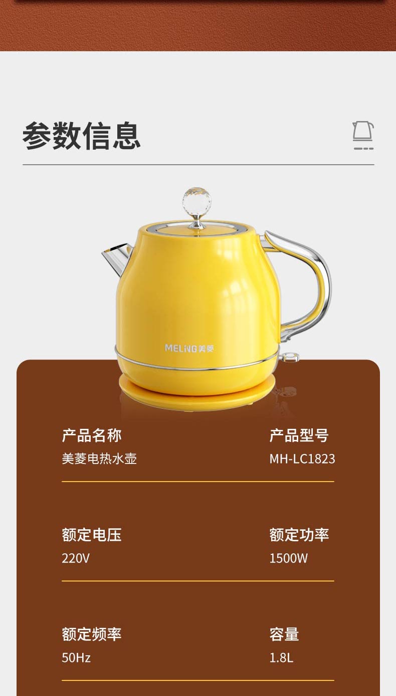 商品名称:美菱(MELING)高颜值电热水壶1.8L大容量家用自动断电便携烧水壶MH-LC1823