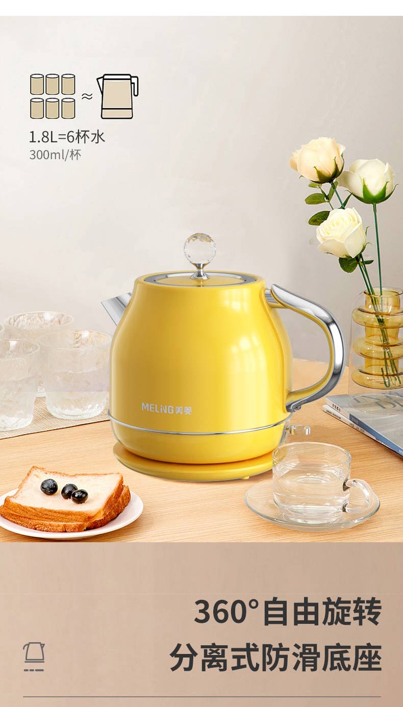美菱(MELING)高颜值电热水壶1.8L大容量家用自动断电便携烧水壶MH-LC1823