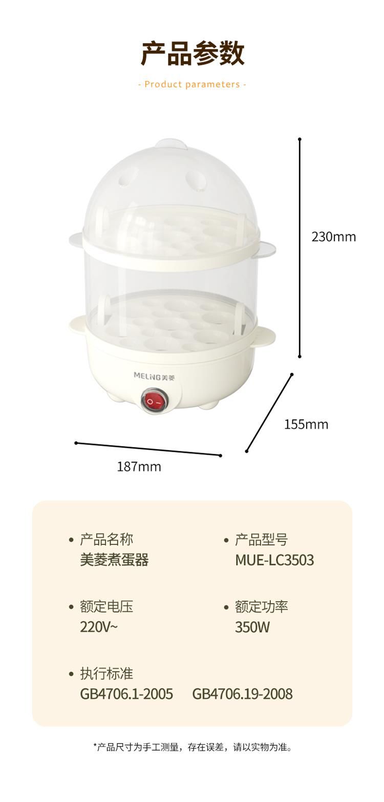 商品名称:美菱(MELING)煮蛋器智能断电双层家用早餐蒸煮蛋器自动蒸蛋机 MUE-LC3503