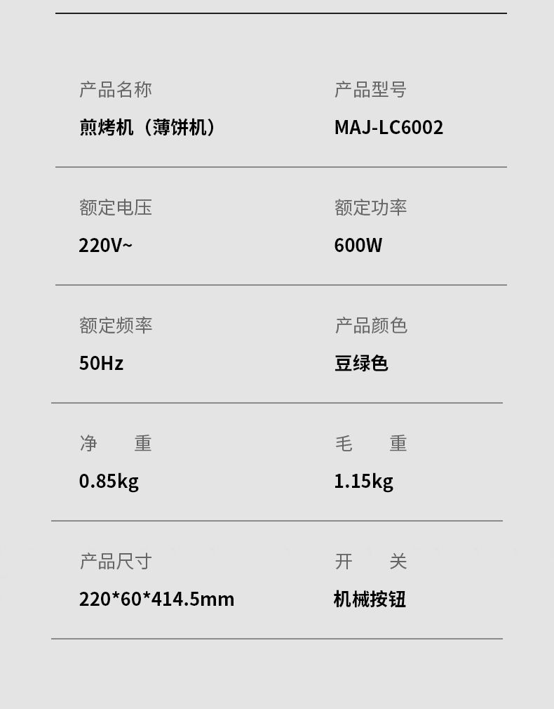 商品名称:美菱(MELING)薄饼机家用全自动电饼铛批发春卷皮烙饼神器多功能 MAJ-LC6002