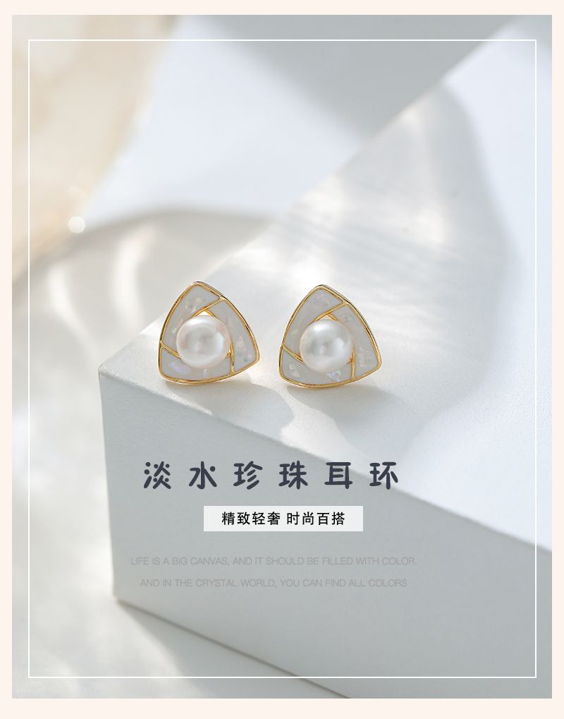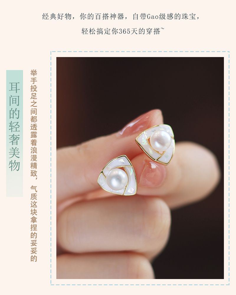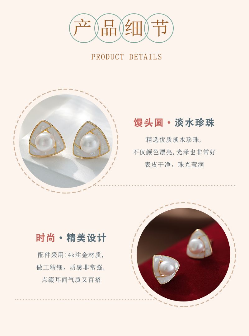 商品名称:三角形滴釉工艺淡水珍珠耳环