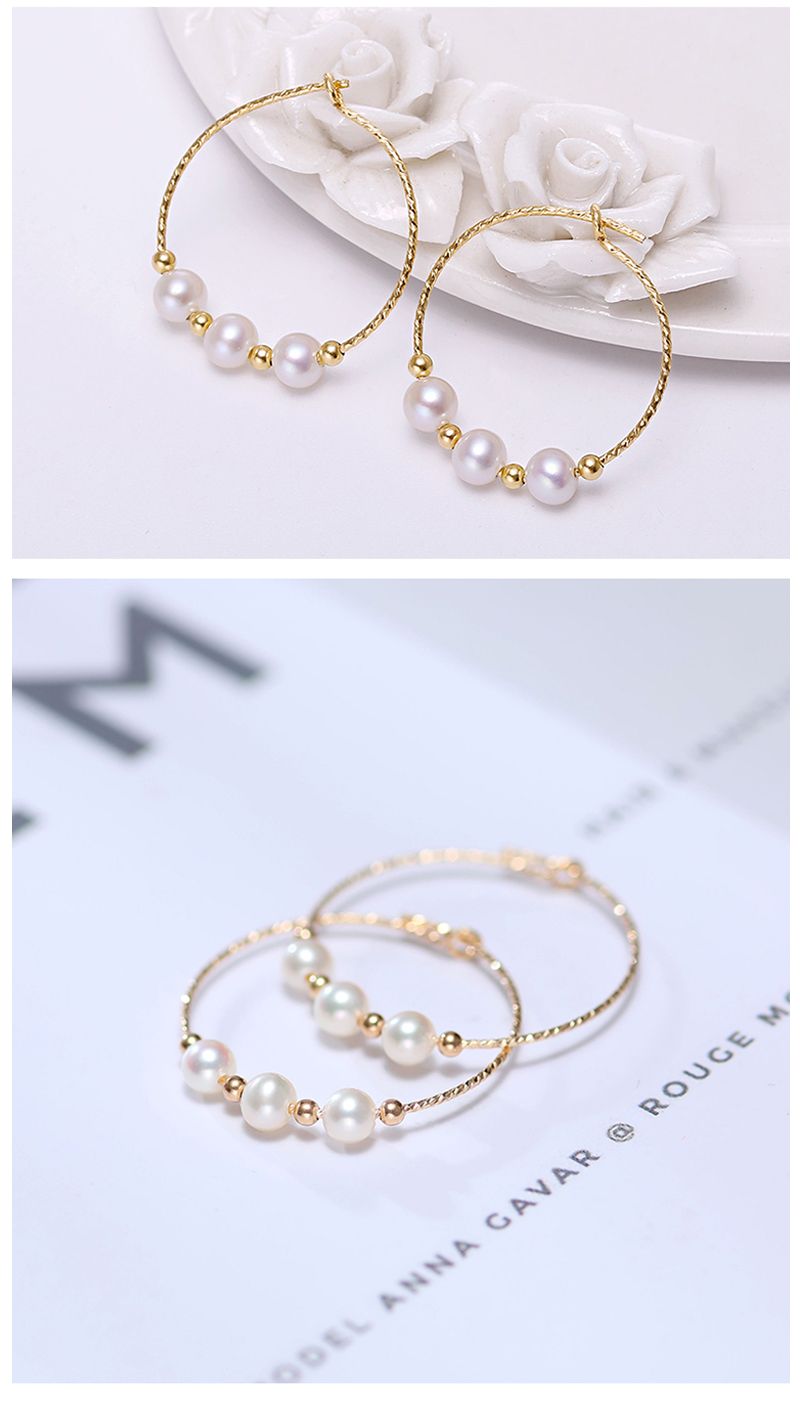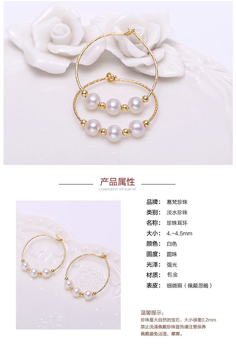 商品名称:妙语 4-4.5mm圆珠强光淡水珍珠一款多戴耳环 14K注金【A356】
